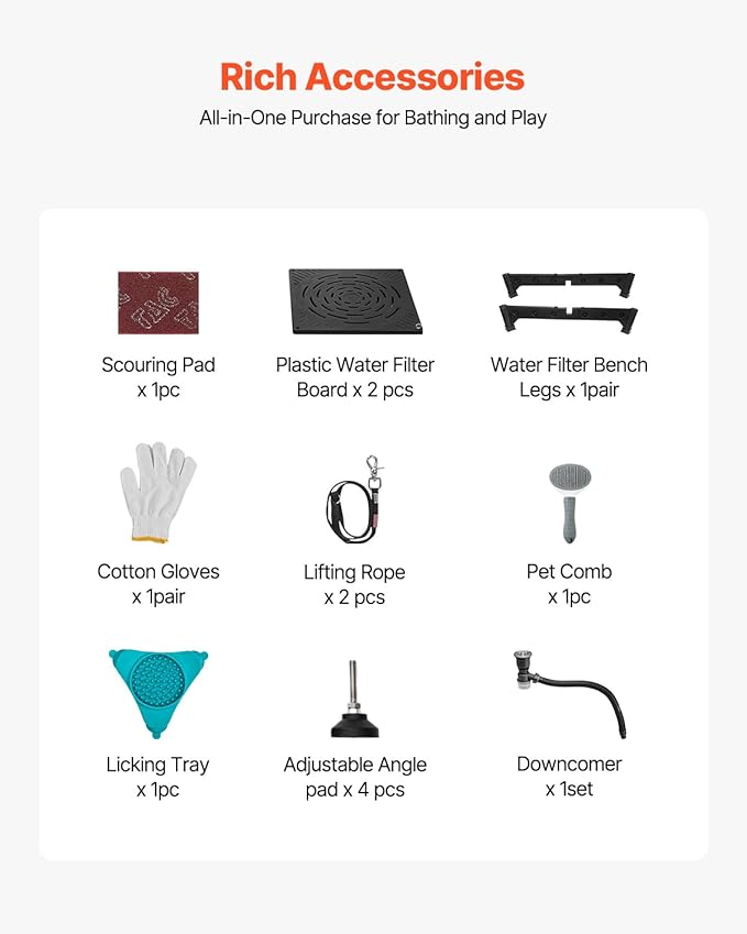 - Complete Accessories: This pet bath station comes with a showerhead, faucet, and a direct connection to a home hose, built for durability. It also includes a licking plate, brush, and gloves, ensuring your pet enjoys a full and enjoyable bathing experience