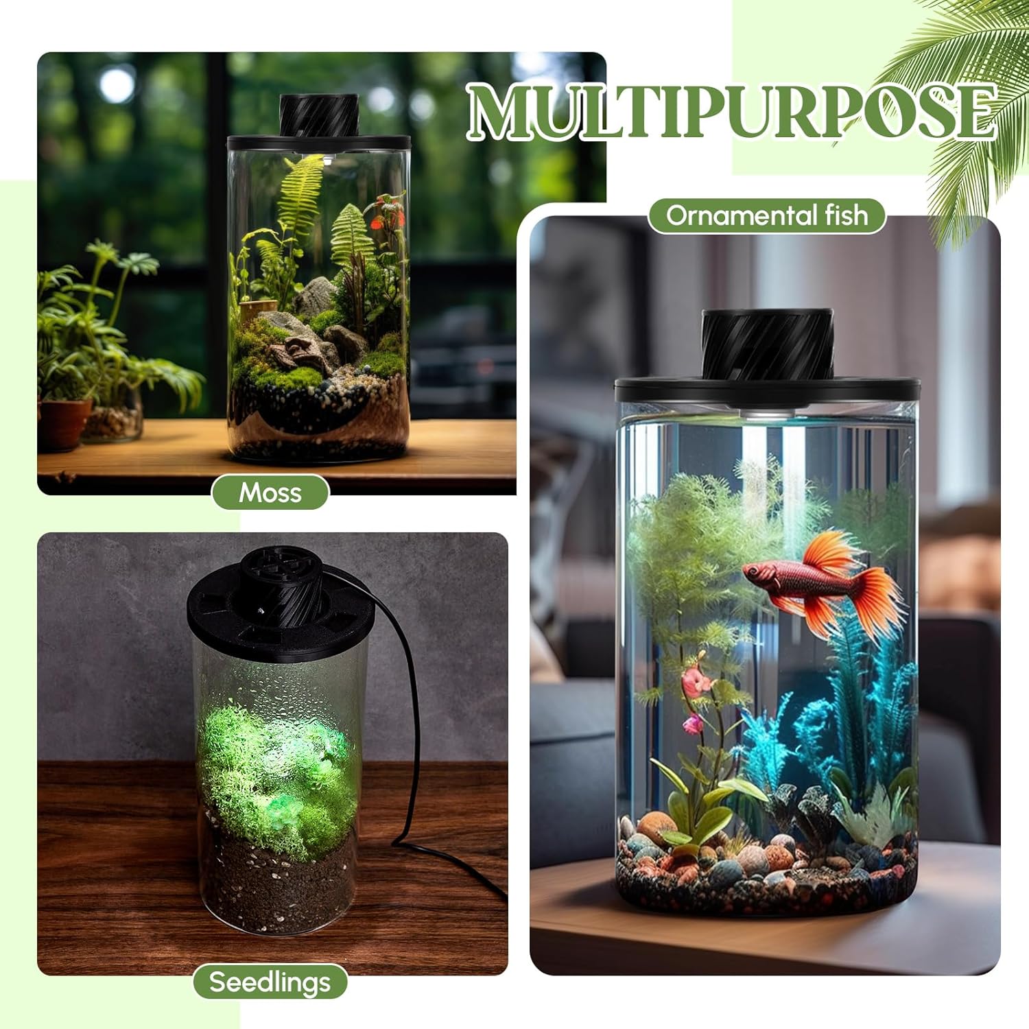 - Efficient and Adjustable Lighting: our 3W LED light is suitable for small plants and mini aquariums; You can easily change between strong and weak lighting modes, providing the right amount of light for your succulents or mosses; The adjustable lighting and rotating lamp base allow you to control the ventilation and humidity inside the bottle, which is especially useful for plants that require high humidity