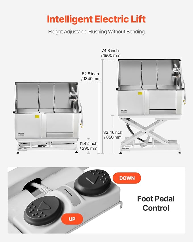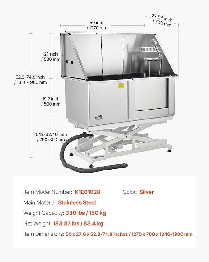 VEVOR Electric Lift Dog Washing Station, 50 inch Professional Stainless Steel Pet Grooming Tub w/PE Water Filter Board, Faucet & Showerhead Dog Bathtub Washing Sink for Multiple Pets (Right Door)
