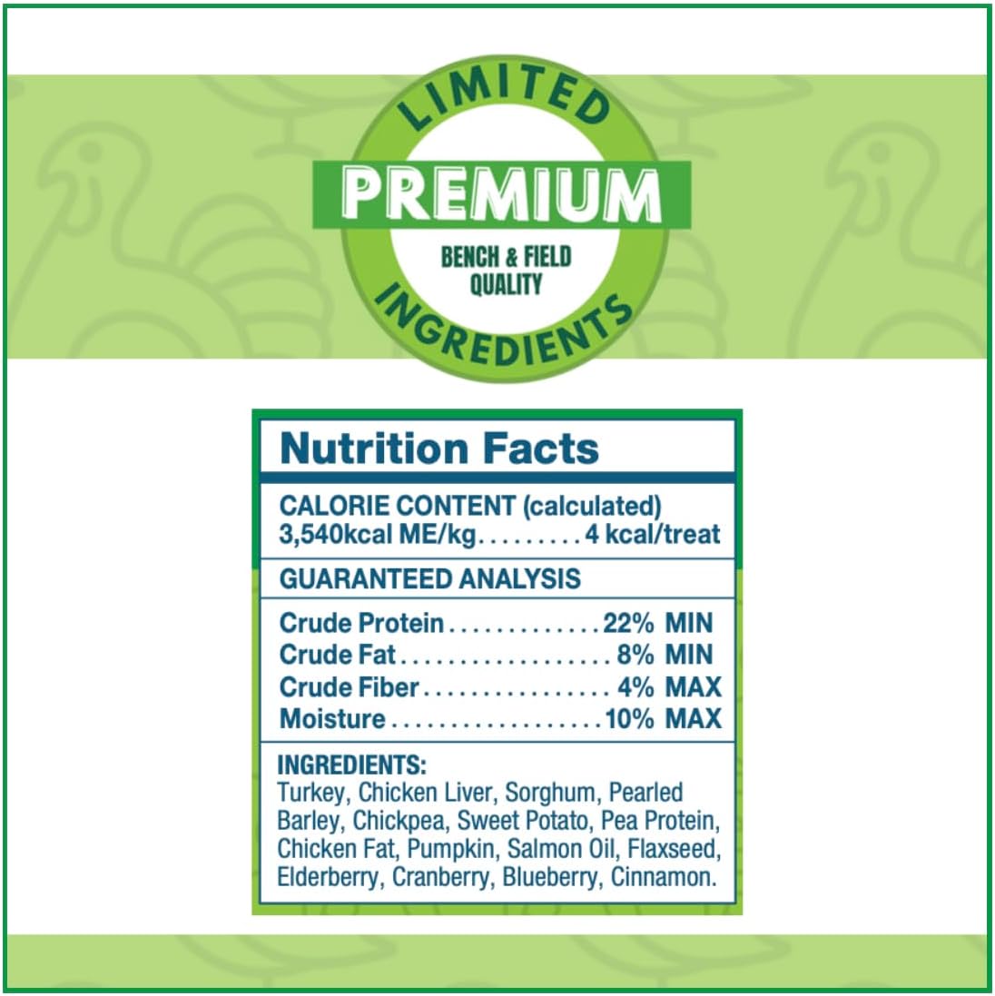 Bench & Field Holistic Natural Turkey & Triple Berry Dog Treats | Crunchy Bone-Shaped Bites | Antioxidant Blend, 10-Ounce Bottle