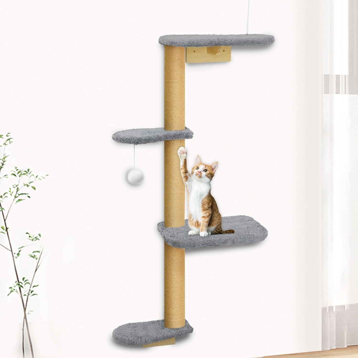 - Ideal for Apartments & Minimalist Interiors: Utilize vertical wall space and free up your floors. This space-saving cat tower turns blank walls into functional play areas without clutter. Its clean design and neutral grey plush integrate easily with modern décor, making it a discreet yet dynamic solution for small-space cat enrichment.