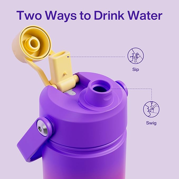 - Sip or Chug, Your Choice: Straw lid for sipping on the go and twist cap for deep hydration, all in one ENCOOL water bottle