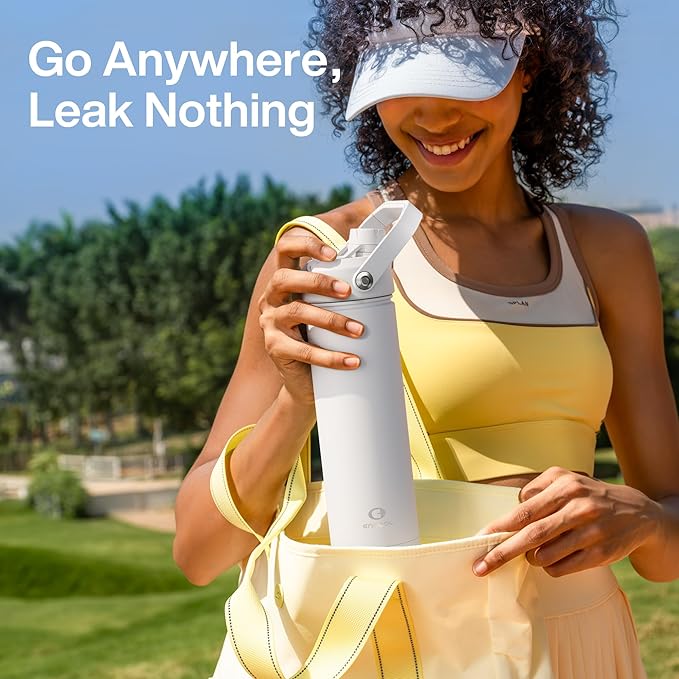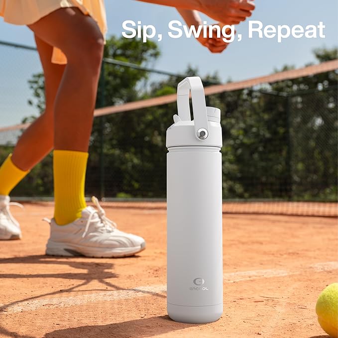 - Sip or Chug, Your Choice: Straw lid for sipping on the go and twist cap for deep hydration, all in one ENCOOL water bottle