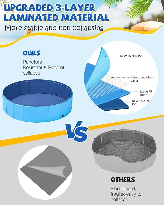 - PORTABLE & CONVENIENT – The dog bath pool is portable and convenient for people to carry and store at any time, which allows your lovely pets to enjoy in the water; There is no need to inflate