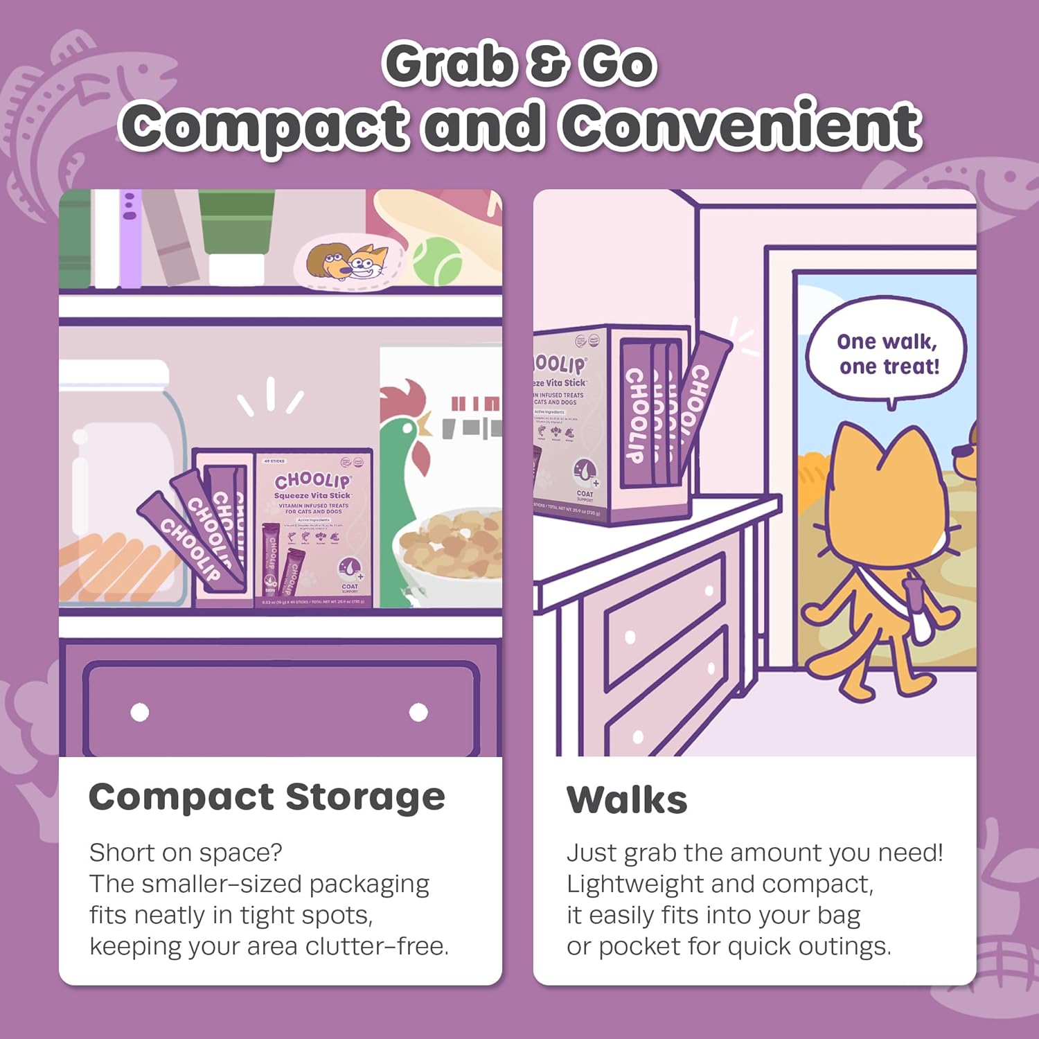 Grab & Go Squeeze Vita Stick Lickable Treats for Dogs & Cats. 49 Coat Support Sticks with Essential multivitamins. Soft and Tasty Paste for All Life Stages, Supporting Coat Health
