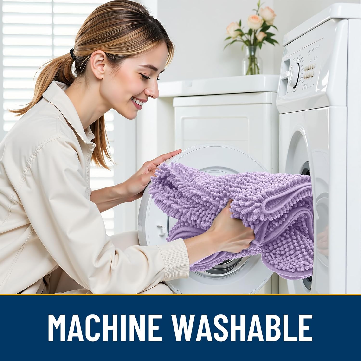 Smiry Dog Door Mat for Muddy Paws 24x16, Absorbs Moisture and Dirt Doormat, Non-Slip Washable Quick Dry Chenille Front Door Mat Indoor Entrance, Entryway Carpet for Inside Floor, Lavender