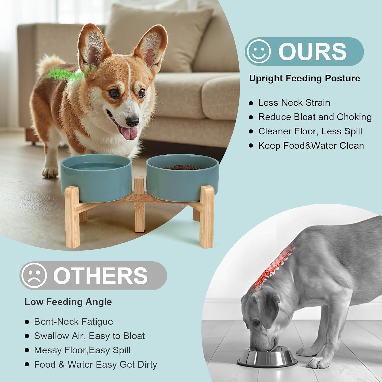 - Stable, Tip‑Resistant Design – A solid bamboo frame with Chew‑Resistant Heavyweight Ceramic, wide stance, and slip‑proof silicone pads join forces to create raised dog bowls that STAY IN PLACE on tile, wood, or laminate. Fewer spills mean cleaner floors and no accidental gouges or scratches or noisy