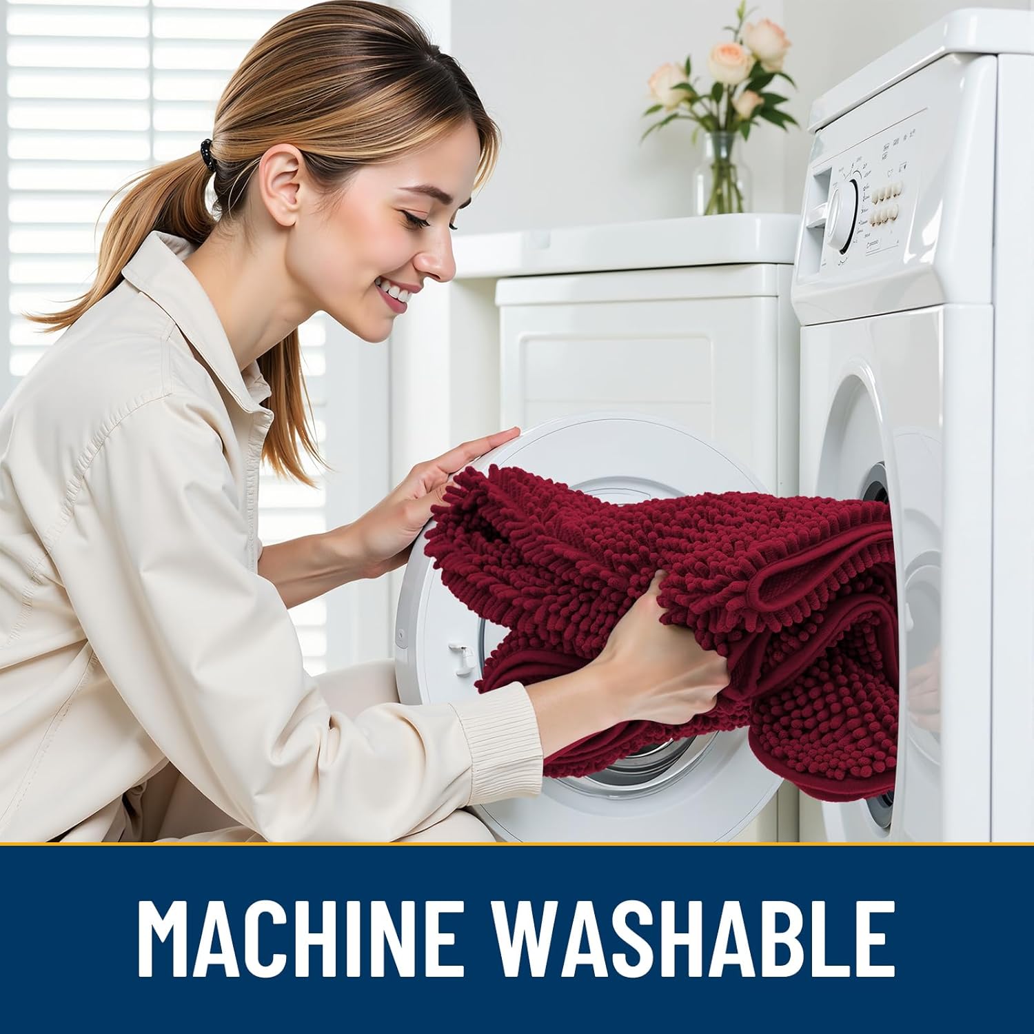 Smiry Dog Door Mat for Muddy Paws 71x46, Absorbs Moisture and Dirt Doormat, Non-Slip Washable Quick Dry Chenille Front Door Mat Indoor Entrance, Entryway Carpet for Inside Floor, Burgundy