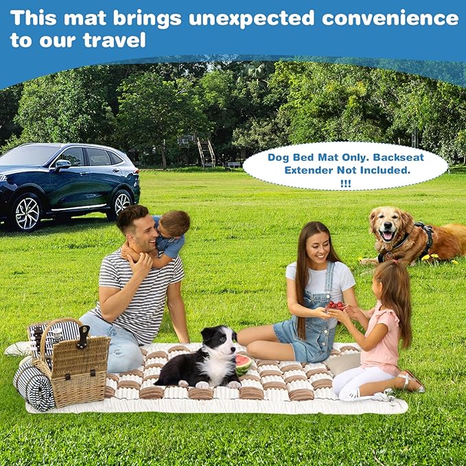 VClife Khaki Plaid Dog Car Bed Mat, Non-Slip Backseat Extender Pet Blanket, Washable Dog Bed Mat for SUVs, Sedans & Small Trucks, Portable Travel Pad for Dogs, Wear Resistant, Pet Friendly, 59"×27.6"