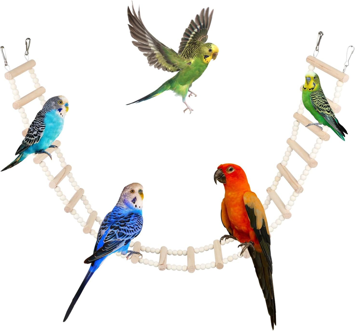 - Flexible & Bendable Design – Built with 16 wooden steps and sturdy stainless steel wire, this 45" ladder easily bends into various shapes to fit different cages or creative play setups – no rust, no hassle!