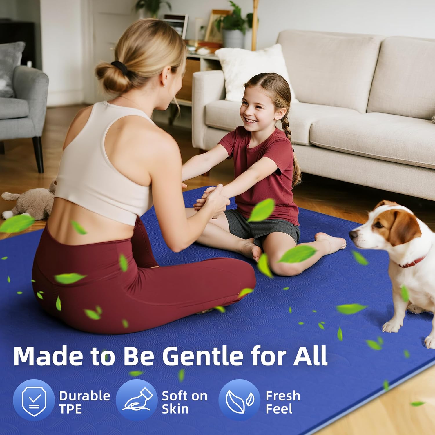 - [Extra Wide 78"x57" – Built for Two. Made for More] Share your space or stretch out solo—this oversized mat is ideal for couples, tall users, or full-body workouts. Nearly twice the width of standard mats, it gives you room to move fully during yoga, pilates, or family fitness sessions.