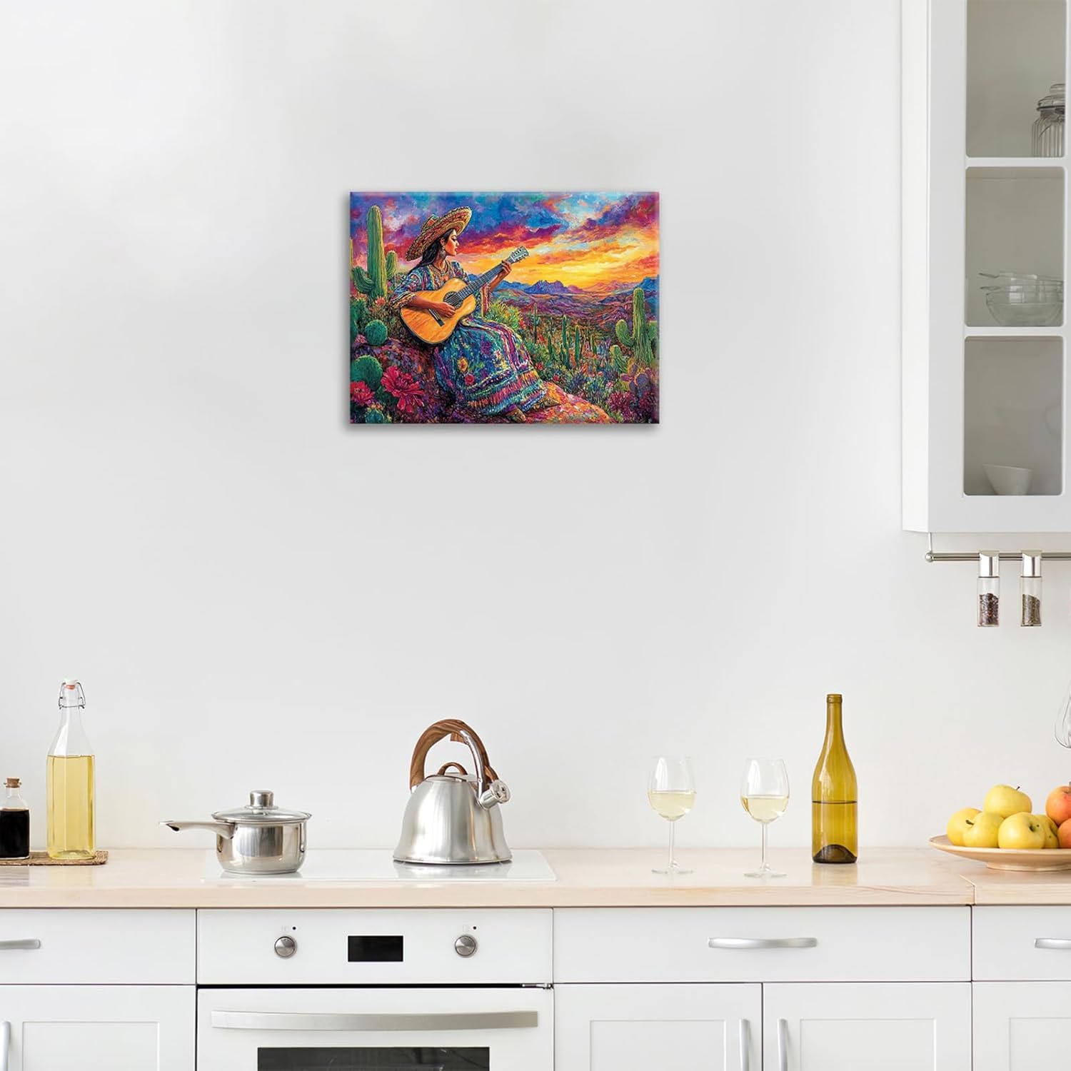Mexican Women Pictures Wall Art, Cactus Landscape Bathroom Wall Decor, Nature Scenery Aesthetics Framed Painting Desert Modern Canvas Artwork for Bathroom Bedroom Living Room Decorations 20"L x 16"W