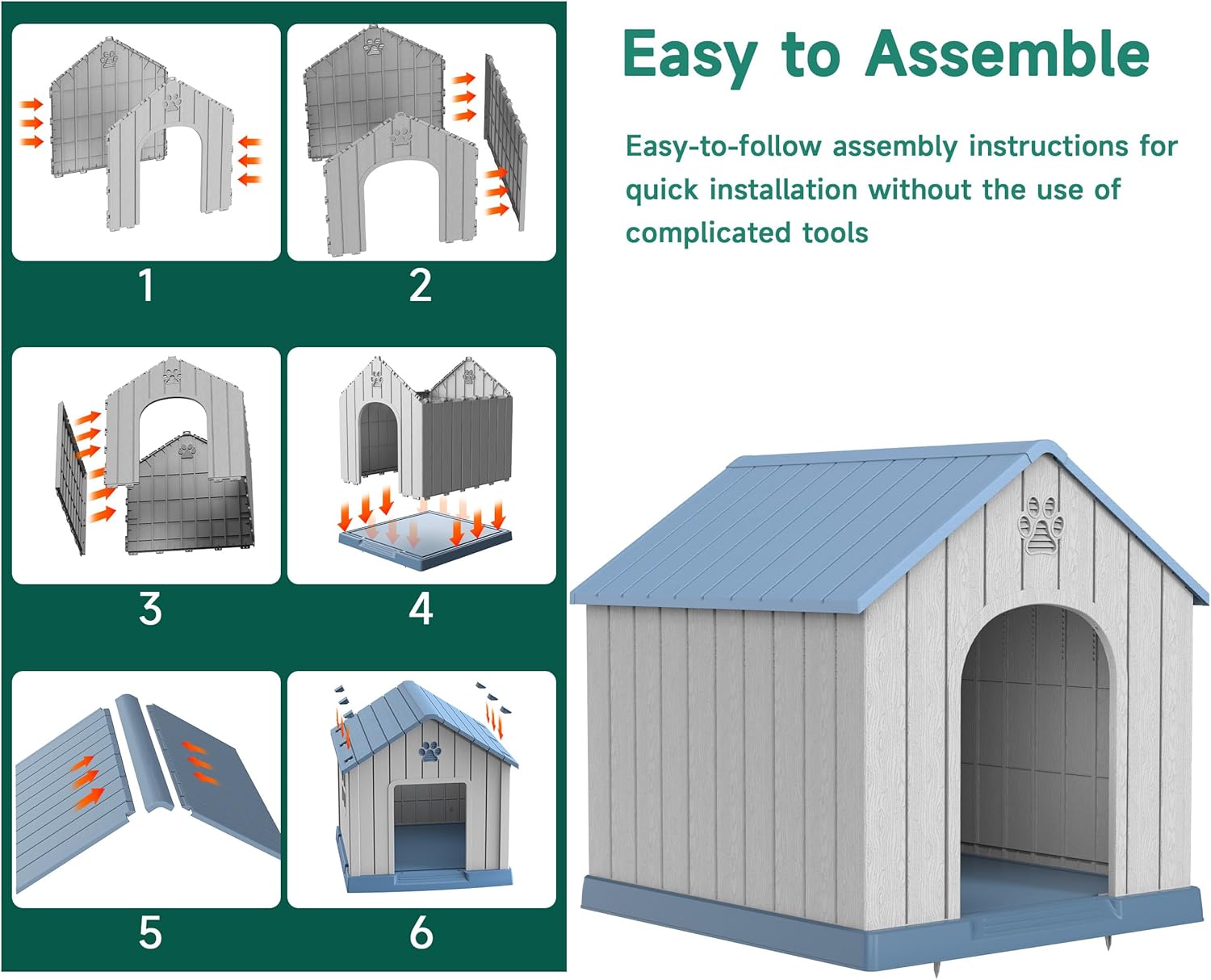- Easy to Assemble: Our doghouse design is straightforward and does not require specialized tools or technical knowledge, you can assemble the dog house in no time and let your dog enjoy his new home.