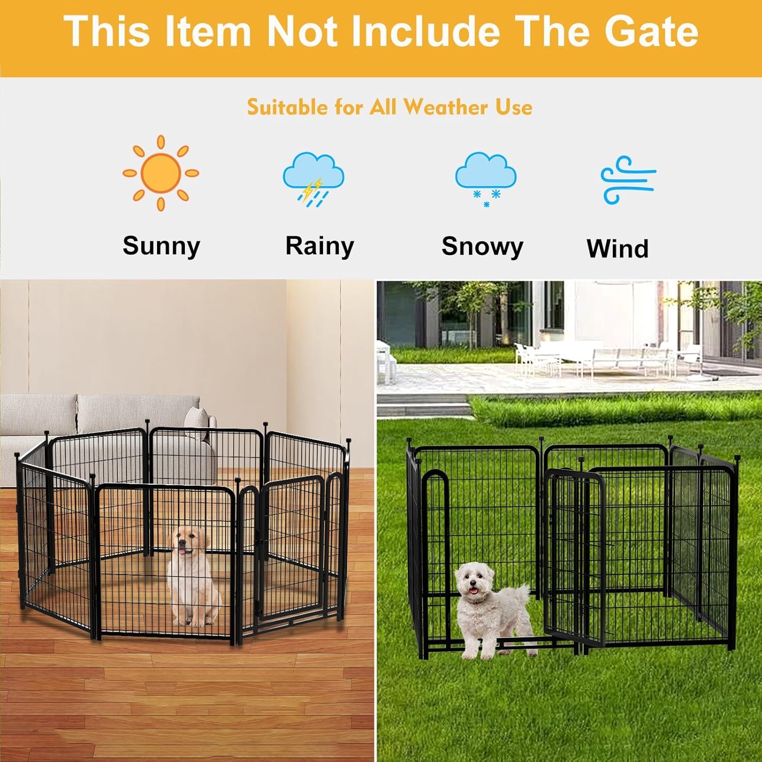 - Easy and Secure Installation: This Dog Fence Does Not Need Tools to Install, You Just Need to Align The Metal Rod with The Connecting Hole of The Two Sides of The Board and Insert It, You Can Connect Them, When You Use Outside, You Can Insert The Metal Rod Tip Into The Ground, The Fence Will be Very Stable, Will Not be Knocked Down Easily; When You Use It Indoors, You Can Wear A Rubber Protective Cover for The Metal Insert Tip So The Fence Won't Scratch Your Floor