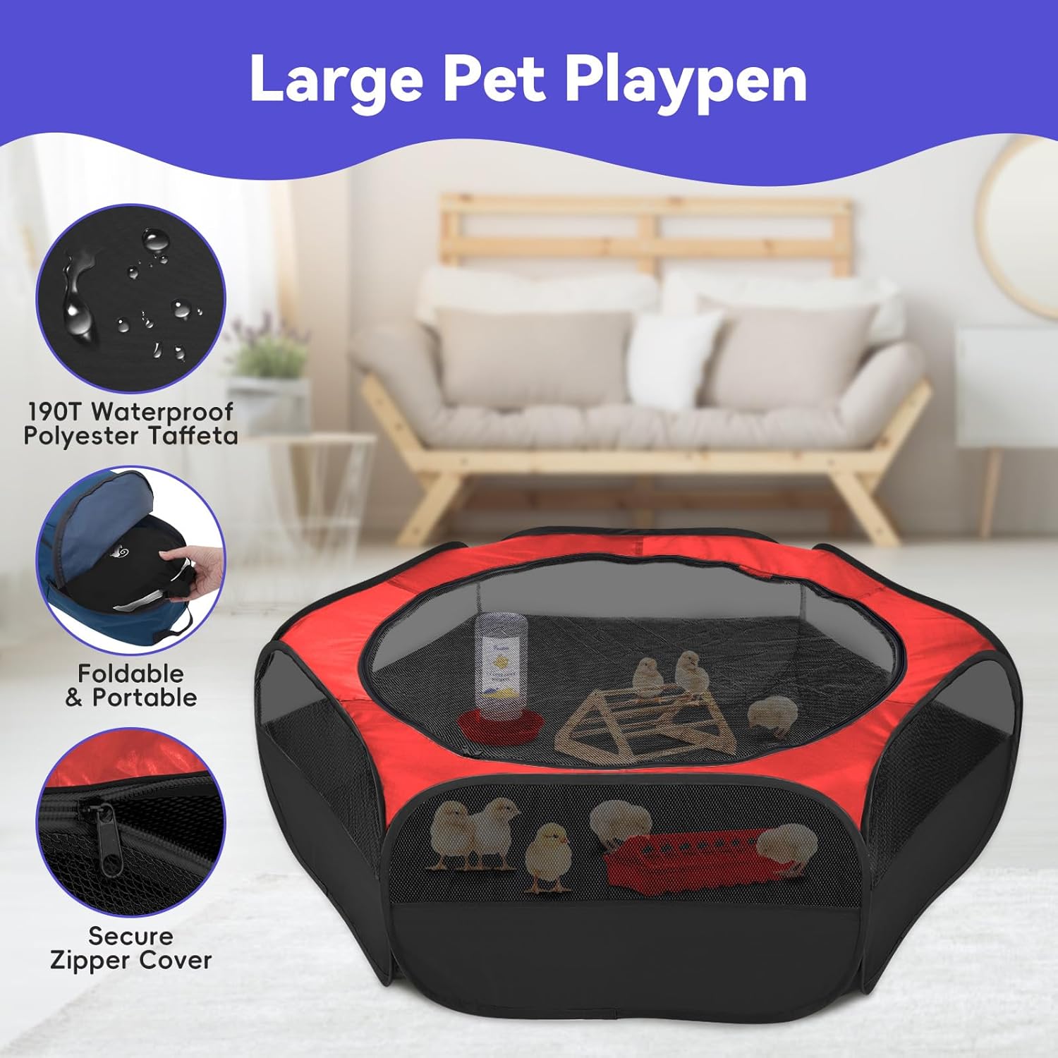 Pawaboo 5-in-1 Chicken Brooder Box for Chick Starter Kit, Includes Pet Cage Tent, Chicks Perch, Chicks Feeder, 1.1L Chick Waterer, Baby Chicken Supplies (Brooder Set), Red+Black