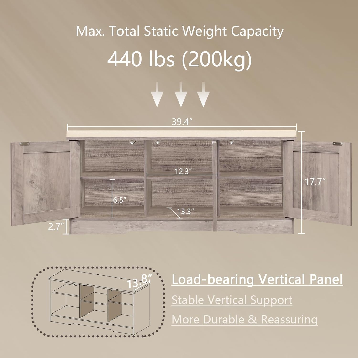 - Product Dimensions : 13.8"D x 39.4"W x 17.7"H