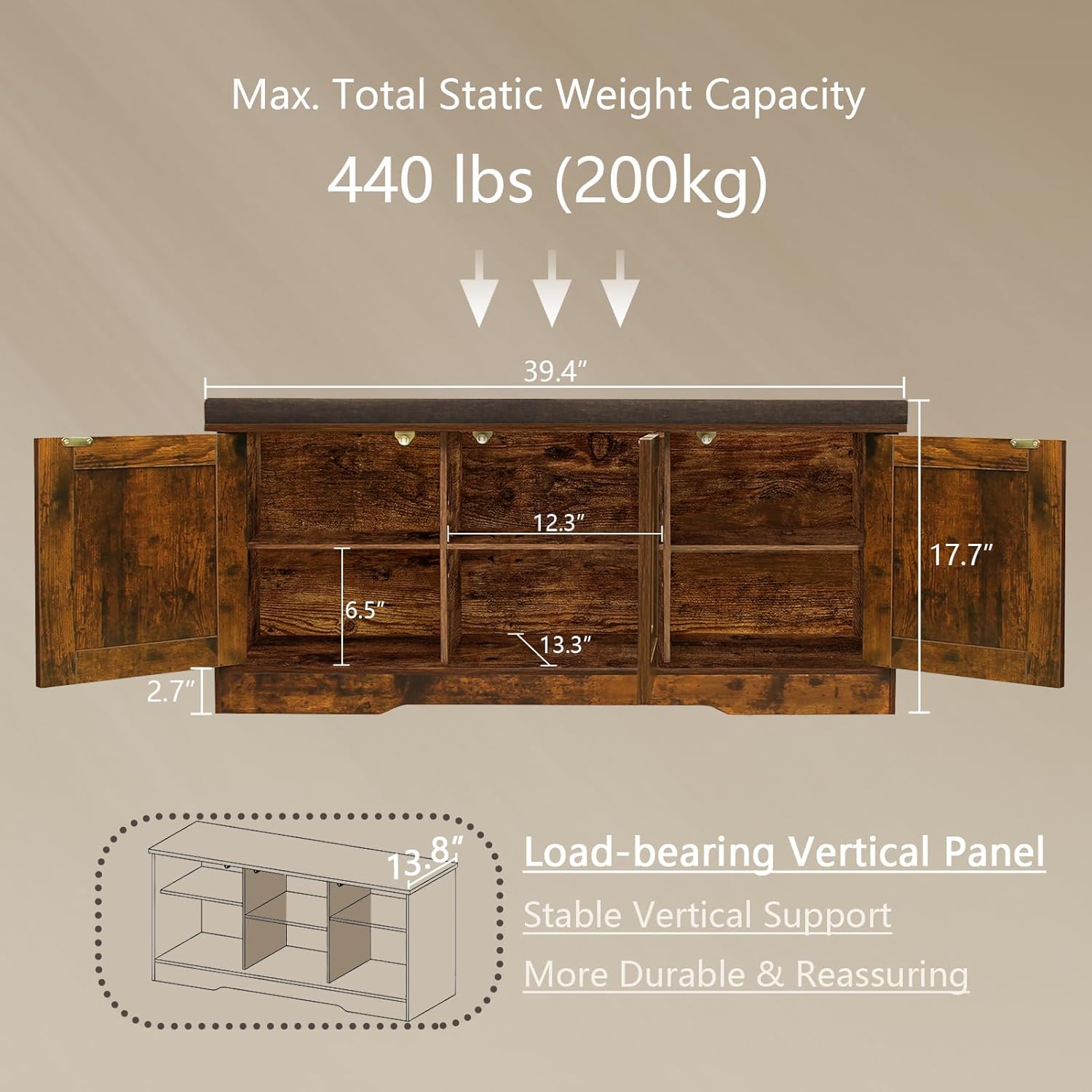 - Product Dimensions : 13.8"D x 39.4"W x 17.7"H