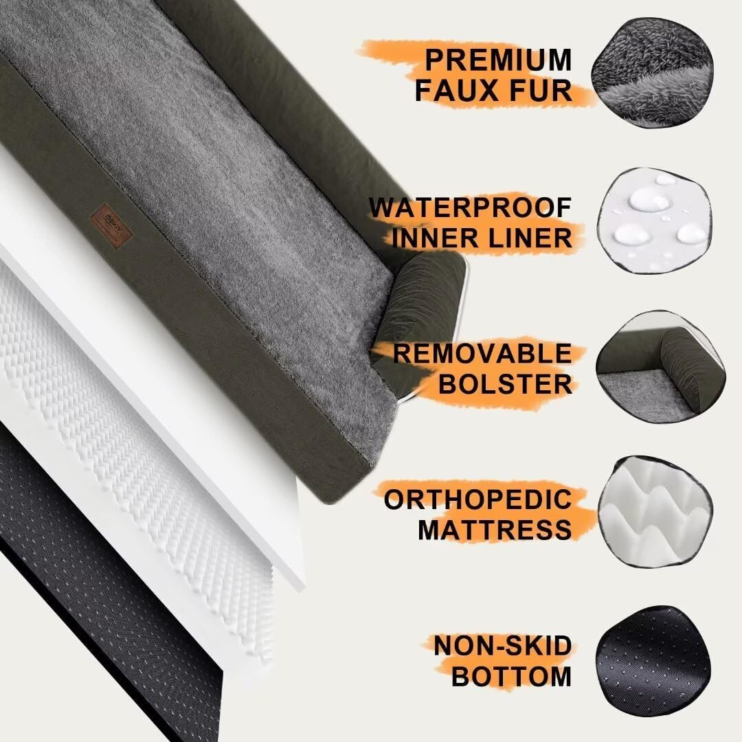 Extra Large Dog Bed-Orthopedic Waterproof XL Dog Bed for XLarge Extra Big Dogs - Foam Couch Sofa Washable with Removable Cover-Dark Green