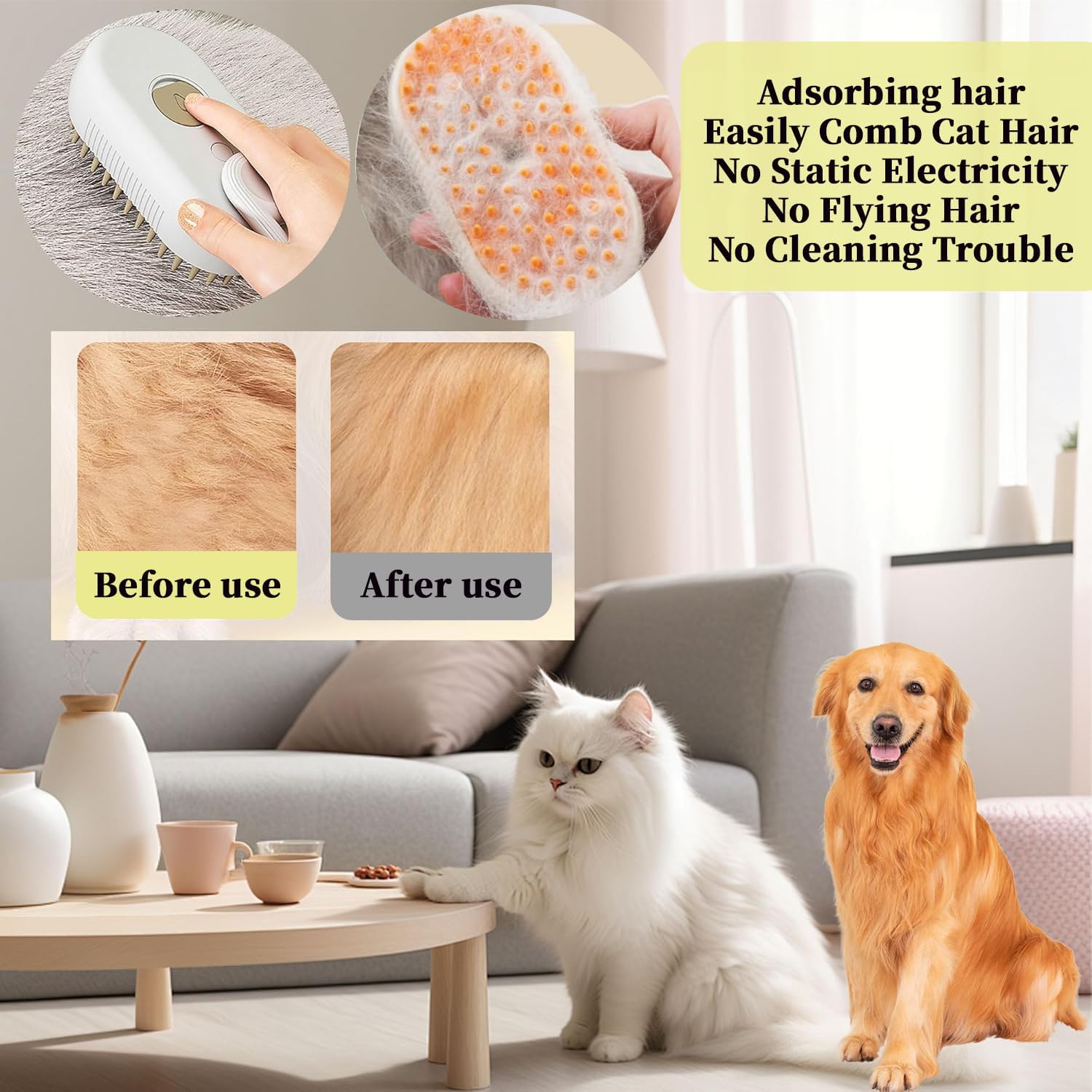 - Convenient Steam Spray Function: With just a press of a button, the brush releases a fine mist of steam, which helps to moisturize and detangle your pet's fur, making grooming sessions more comfortable and enjoyable for your furry friend