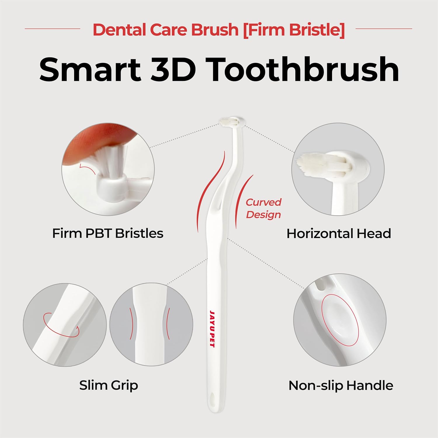 - Perfect Tartar Removal - The horizontal head helps to brush sharp and curved teeth easily and the S-curved body helps to brush molars which plaques easily get accumulated. Brushing effect is even better when using JAYU PET dental gel.