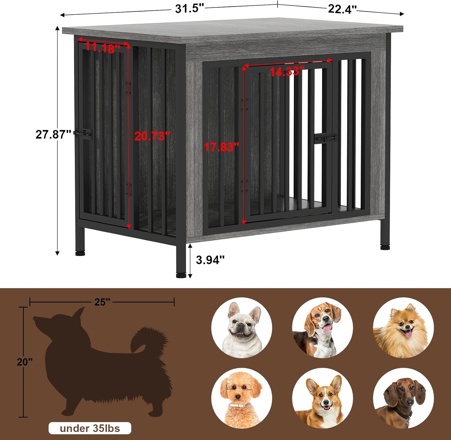 • 【Provide Ample Space for Dogs】: With 31.5" W x 22.4" D x 27.87" H dimension, the dog kennel furniture can allows small and medium dogs to have a comfortable and spacious living space, avoiding anxiety and unease due to limited space. The specific installation steps can refer to the detailed manual.
