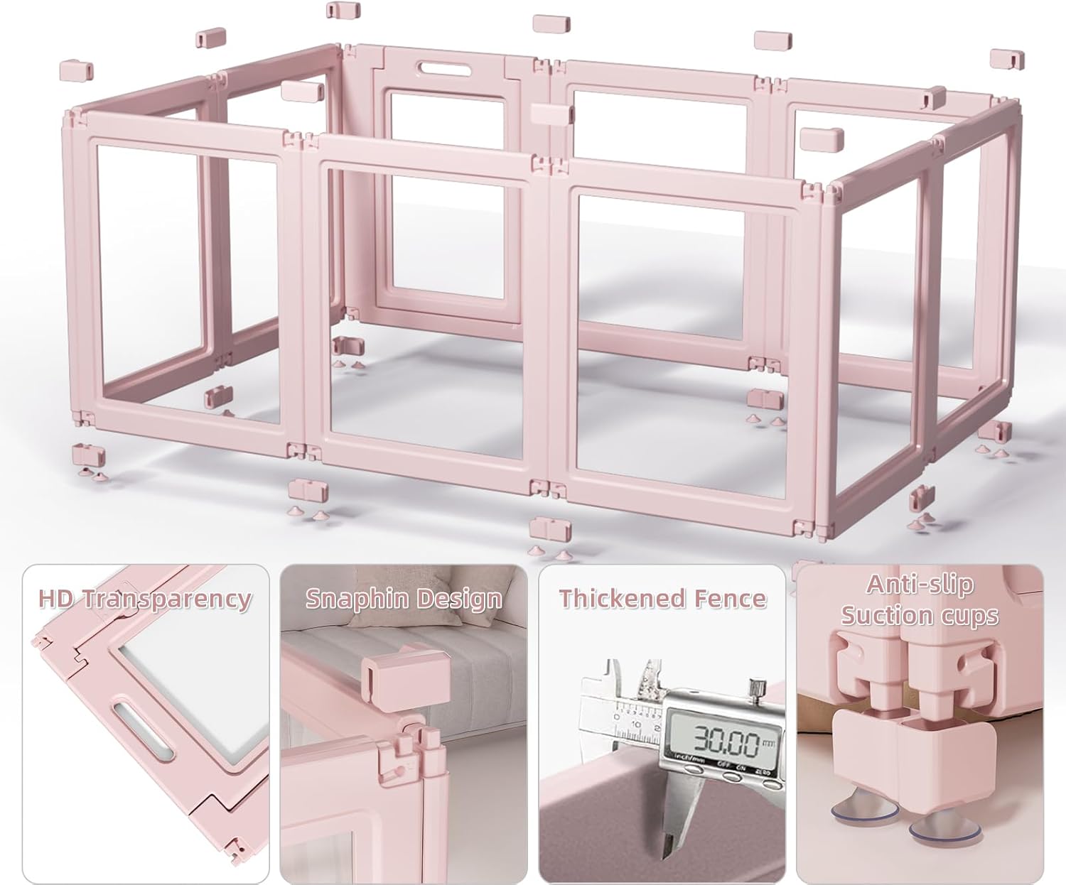 DIY Clear Acrylic Dog Playpen House,Quick Easy Assembly and Disassembly,Strong Floor Suction,Indoor and Outdoor Use,Easy Cleansing Puppy Fence (Skin Pink, 30.3" H, 8PCS)
