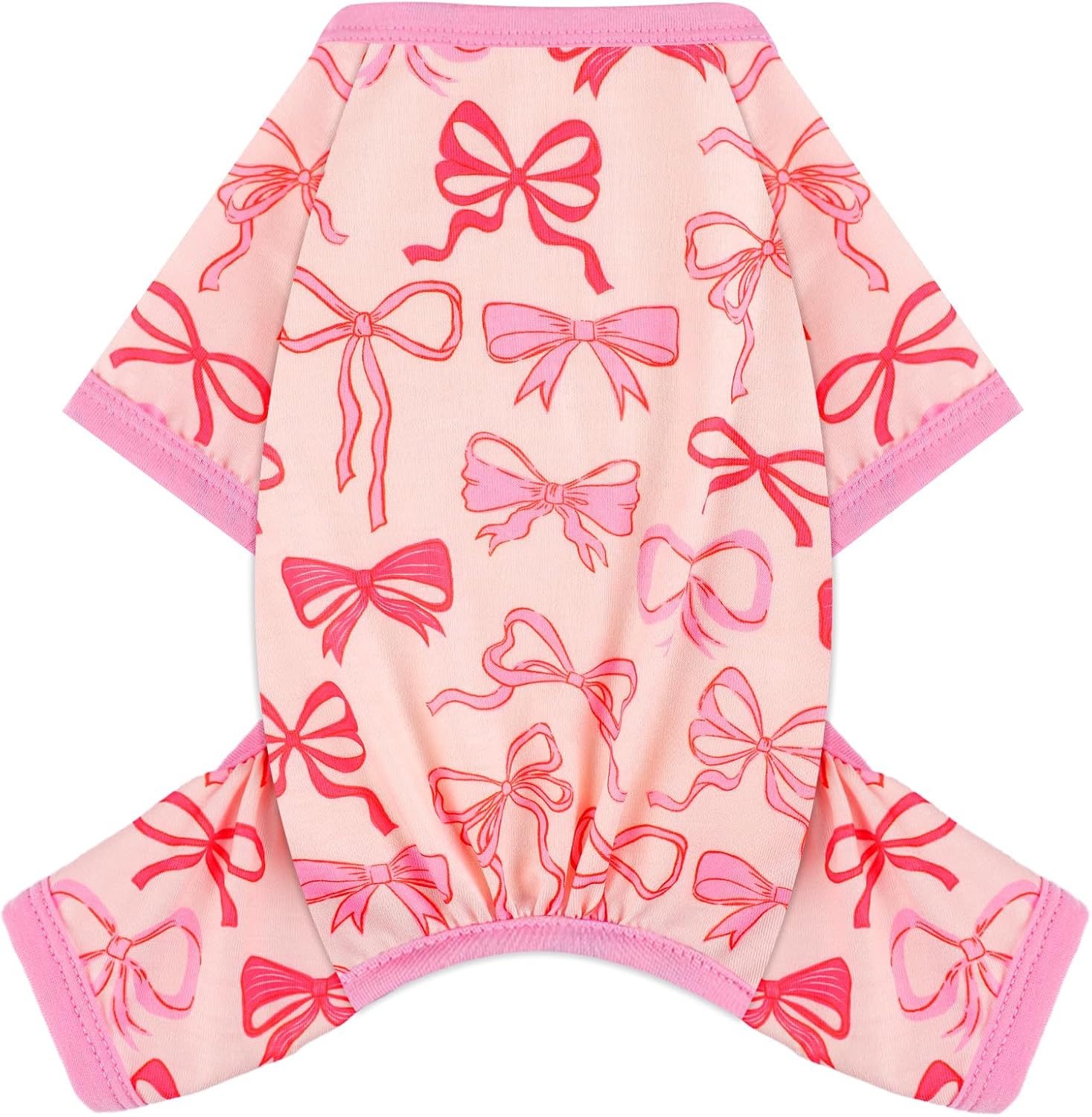 Dog Pajamas Small Sized Dogs Stretchable Summer Dog Clothes Pjs 4 Legs Girl Boy Cute Soft Puppy Outfits Doggie Cat Jammies Jumpsuit Sleeper for Pet (Bow Tie, Large)