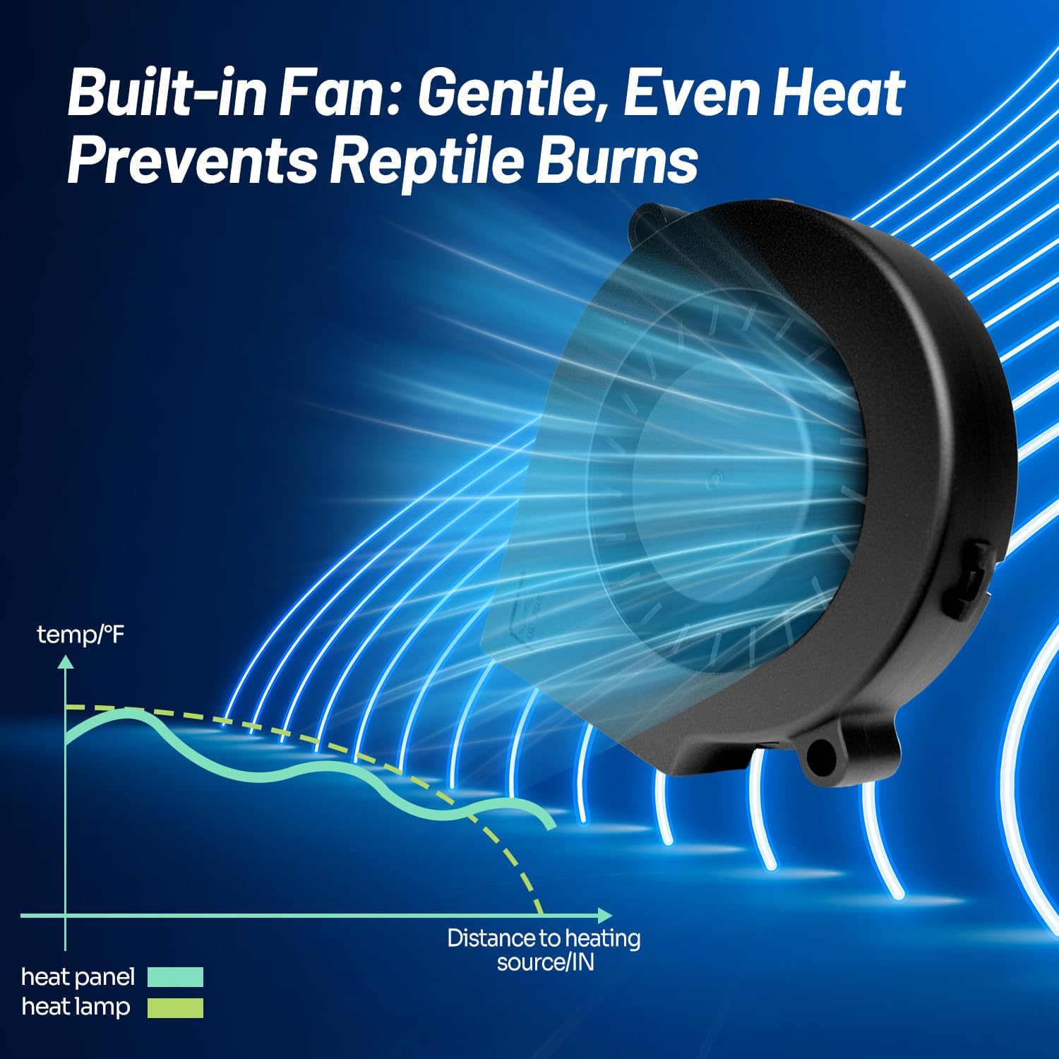 - 【Built-in Fan & Precise Thermoregulation】: Features an integrated fan to evenly distribute heat and prevent dangerous hot spots. Paired with an easy-adjust knob for precise temperature control, creating a safe and perfectly tailored thermal gradient.