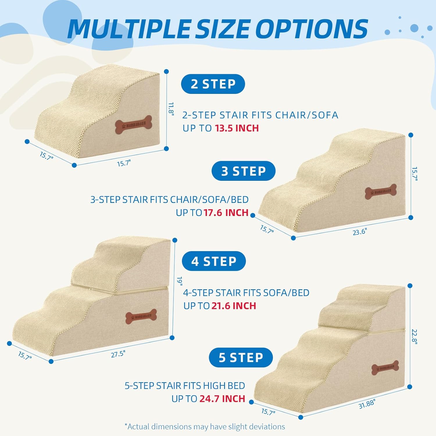 Dog Stairs 4 Steps for Small Dogs and Cats to Get on High Beds, Couch or Car, Pets Can Climb, Sit, Lie Down or Perch to Look Out Windows on The Spliceable Ramp, Provides Support, Beige(19" H)