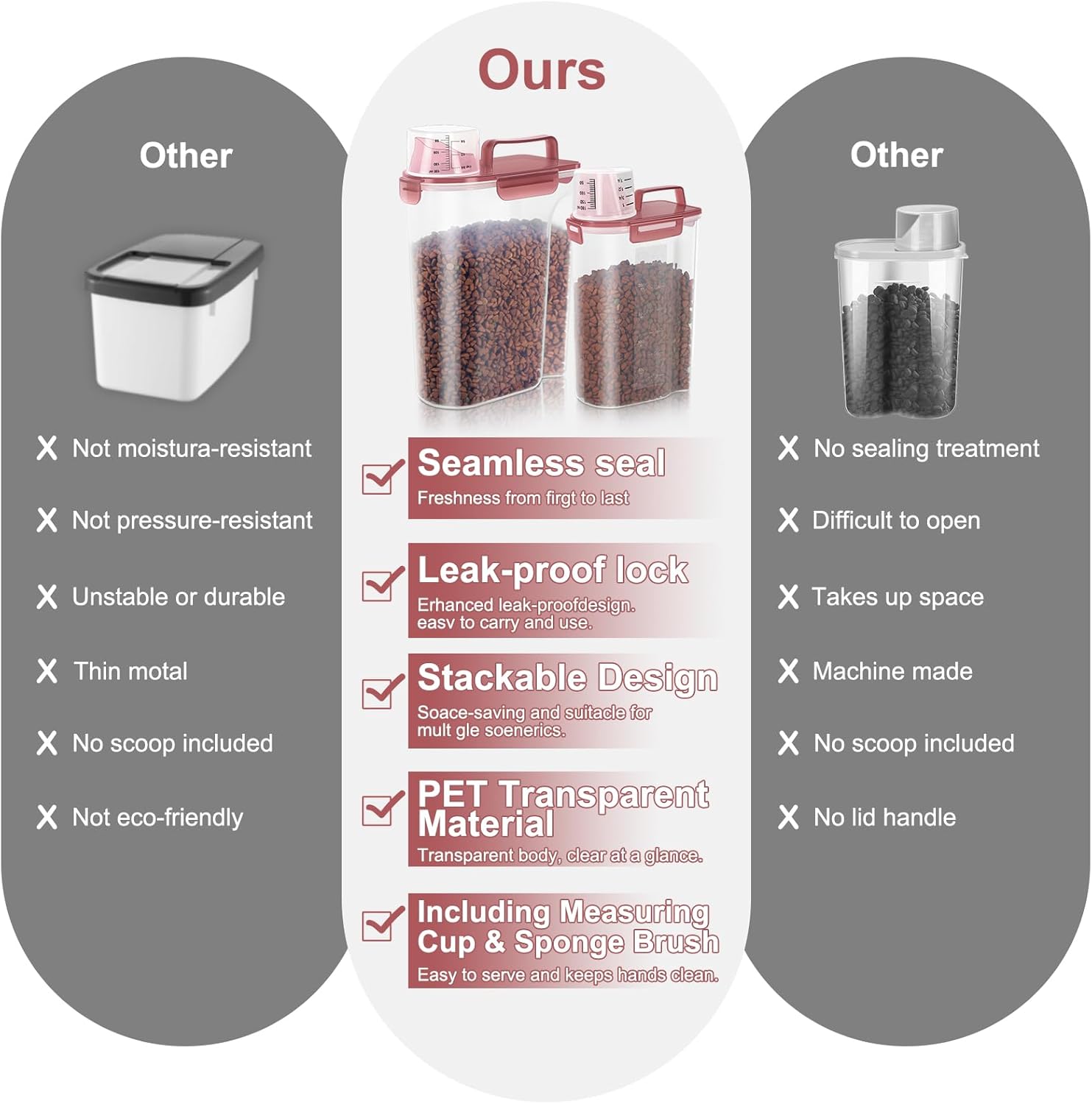 - MATERIAL: BPA-free durable plastic container-reusable and practical pet food storage container is made of BPA-free food-grade plastic.Safe for storing human food or pet food.Durable enough,long-lasting,easy to clean,transparent body,food can be seen at a glance.
