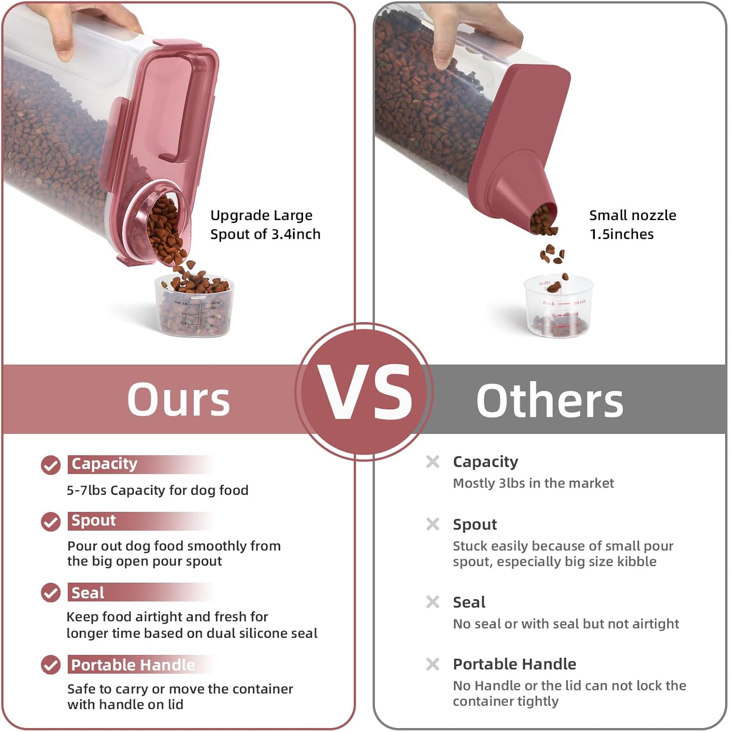 Dog Food Storage Container, Upgraded Large Nozzle BPA-free, 8-12 LBS Plastic Pet Food Storage Containers, With 4 Sealed Clasps, 1 Measuring Cup and Handle (2, Clear Pink, (3L+5L))