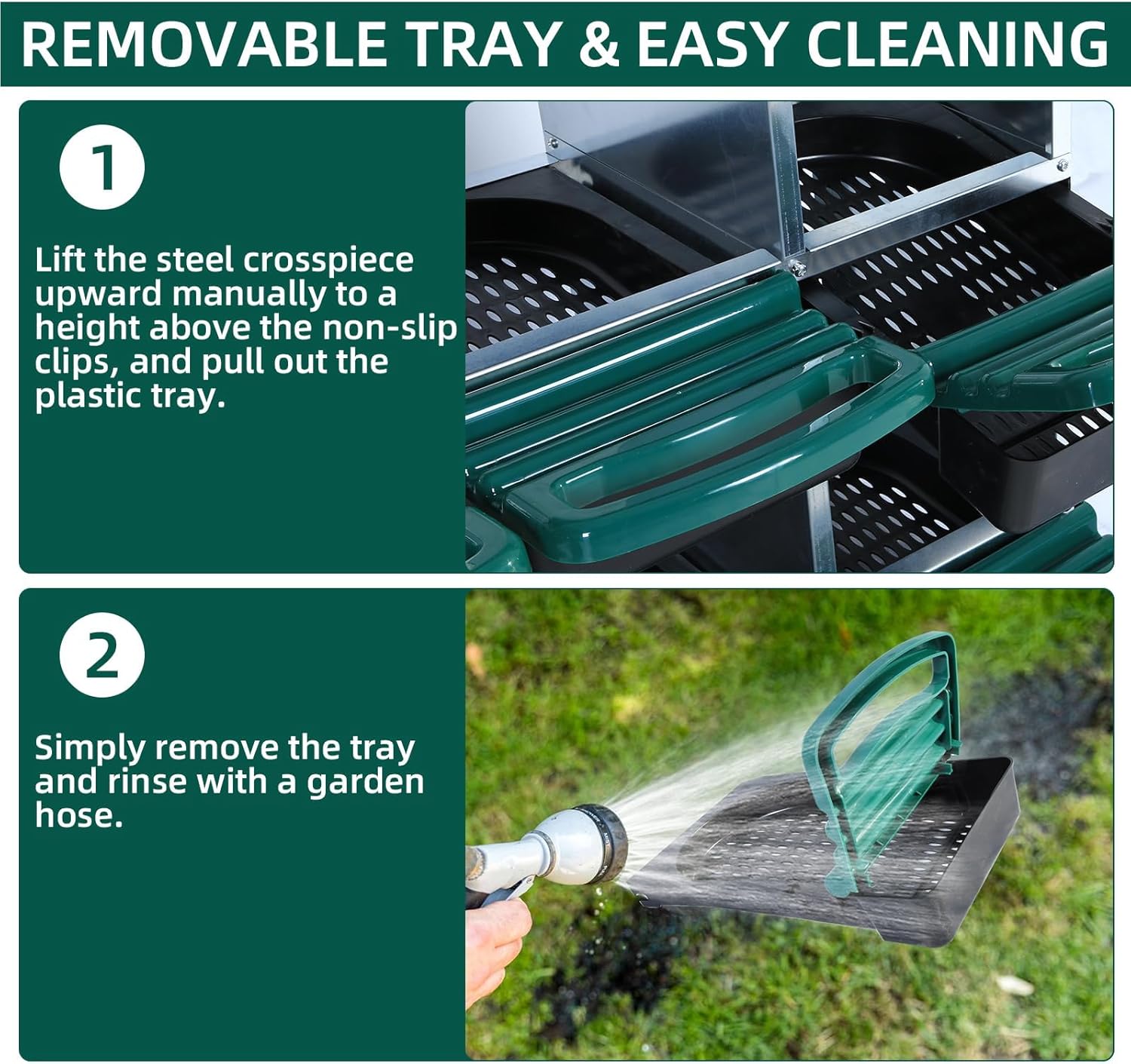 - EASY CLEANING: The small holes in the bottom of this egg nesting box prevent moisture and debris from accumulating, and the removable tray makes cleaning easy. Simply rinse with water to keep the nesting box clean and tidy, ensuring the health of the hens.