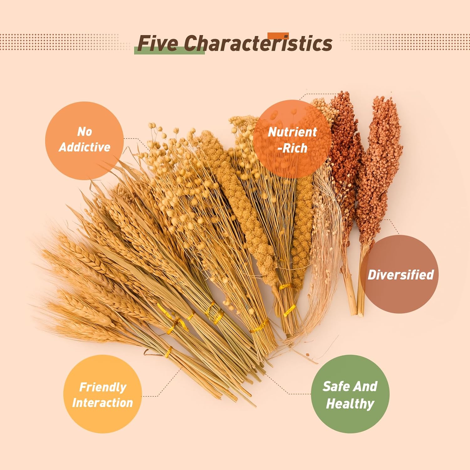 - Abundant Variety & Great Value: Enjoy large quantities at an affordable price. Features rich mixes: the 5-type blend includes rice ears, wheat ears, flax seed ears, yellow millets, and millet ears; the 7-type blend adds red and white sorghum for endless enrichment.
