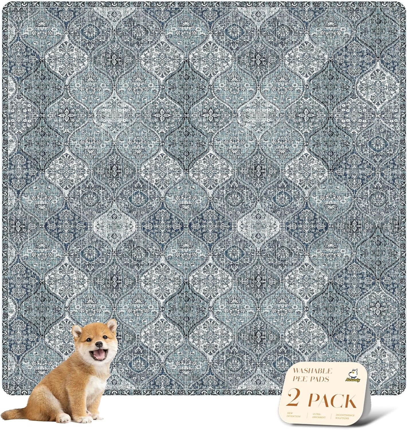 nunubaby 2PACK Washable Pee Pads for Dogs, Stylish, Non-Slip and Leak-Proof Pee Pads. Reusable Potty Pads for Dogs for Crates and Floors.(Blue/Multi, 72" x72")