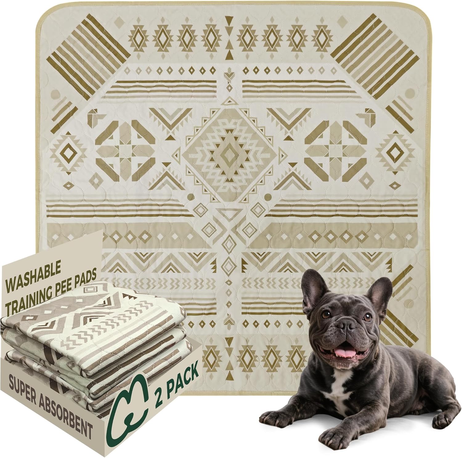 FXW Washable Pee Pads for Dogs, Puppy Pads with Super Absorbent, Specifically Designed for Potty Training, 35" Square, Khaki Geometric, 2 Packs