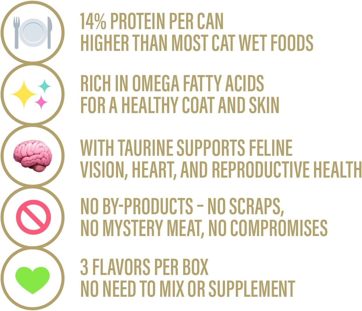 Chewer's Joy Wet Cat Food Variety Pack – 3 Flavors: Tuna & Salmon, Tuna & Chicken, Tuna & Turkey – Natural Pâté – High Protein – Grain Free – Complete & Balanced Nutrition – 24 Cans (3 oz)