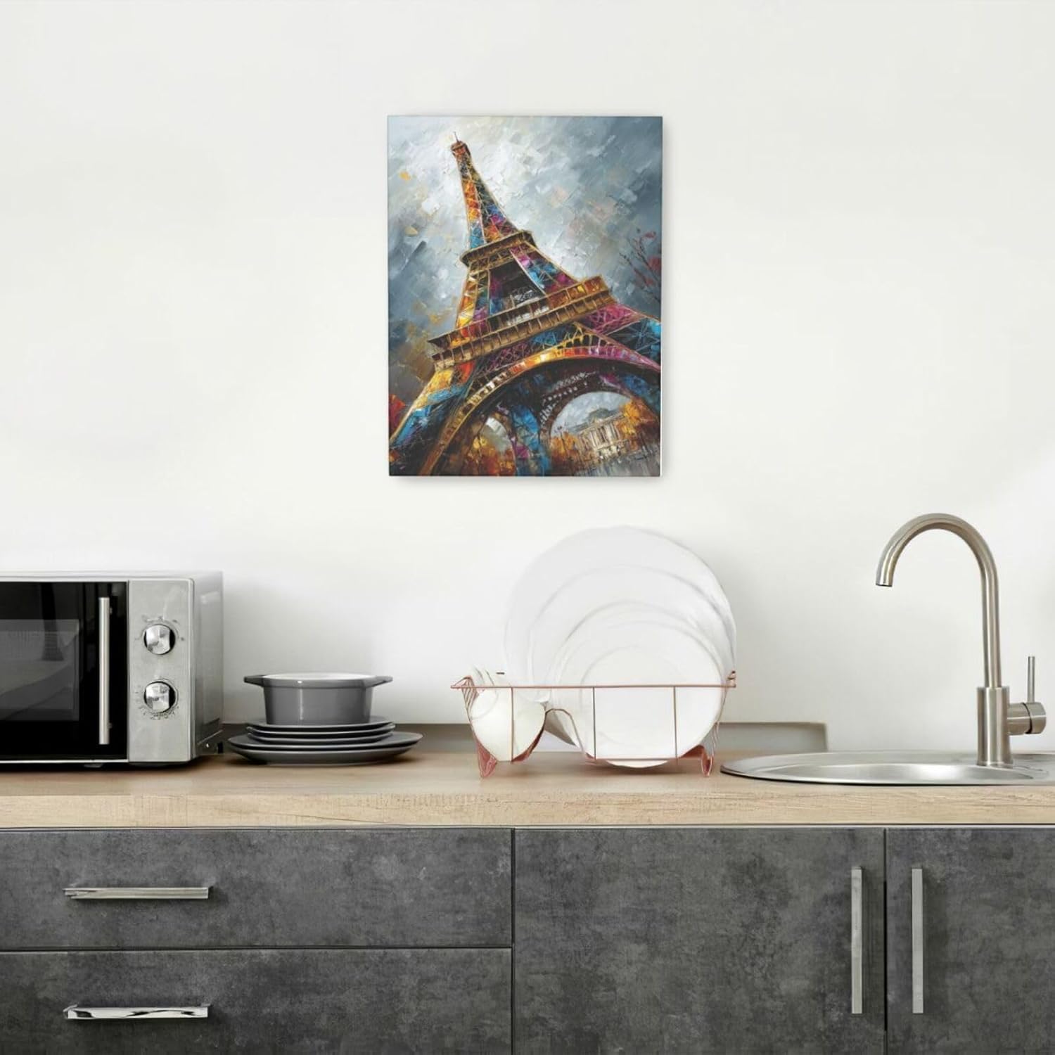 Paris Eiffel Tower Wall Art Paris Architecture Canvas Wall Decor Europe City Eiffel Tower Pictures Painting Print Artwork Framed Decorations Gifts for Living Room Bedroom Office 12"x16"