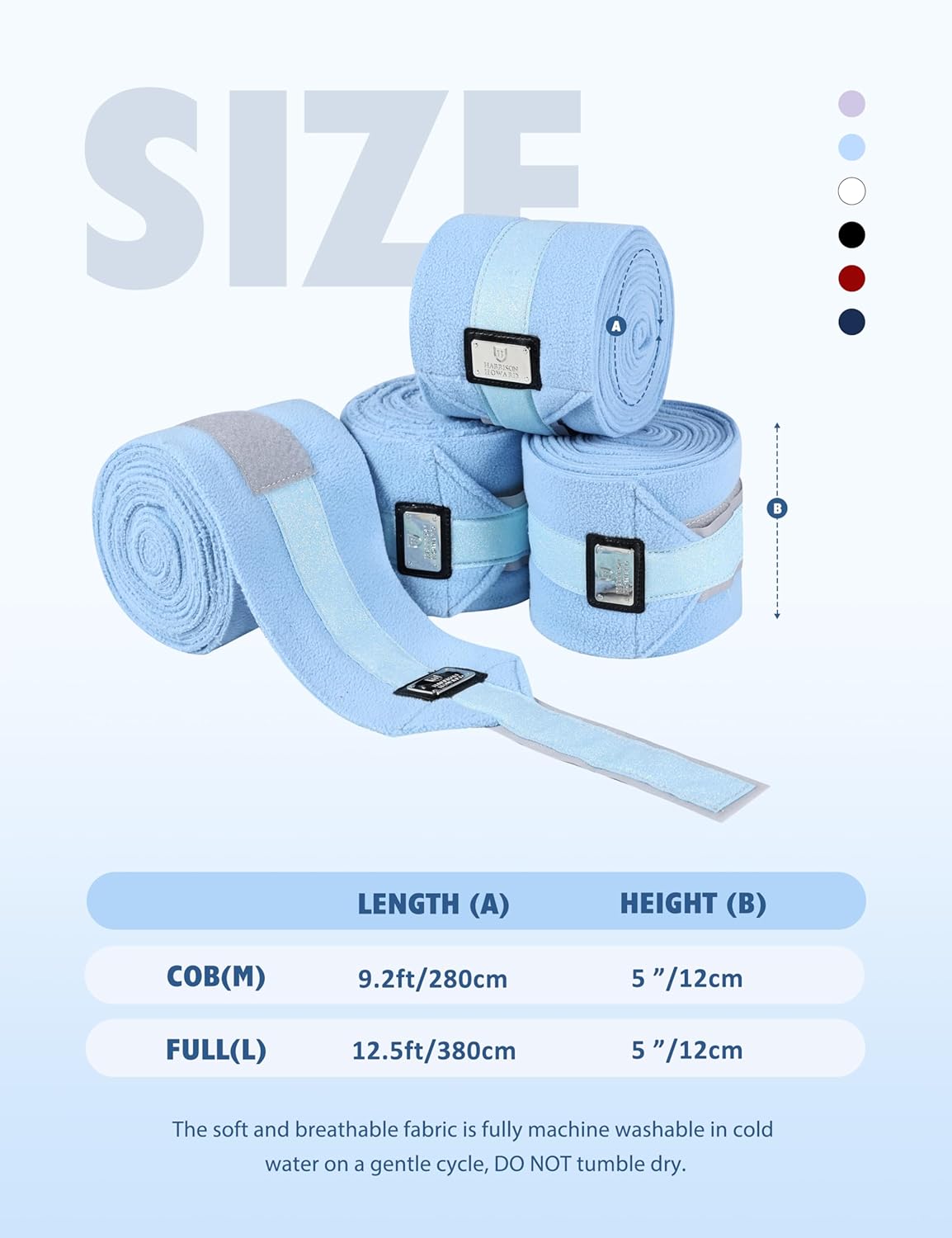 Harrison Howard Horse Polo Wraps Upgrade with Bling Leg Wraps for Horses 4-Pack Fleece Leg Wraps Stable Supplies Ice Blue L