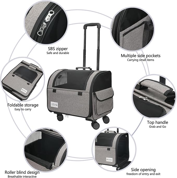 - Two ways to carry: Our pet bag allows you to easily unload the burden on your shoulders! This pet bag is equipped with 4 high-quality rollers that can rotate 360°, which can bring a smooth and comfortable experience even on rugged roads or grass. The top handle is convenient for hand-carrying, and two ways of carrying make travel more convenient.
