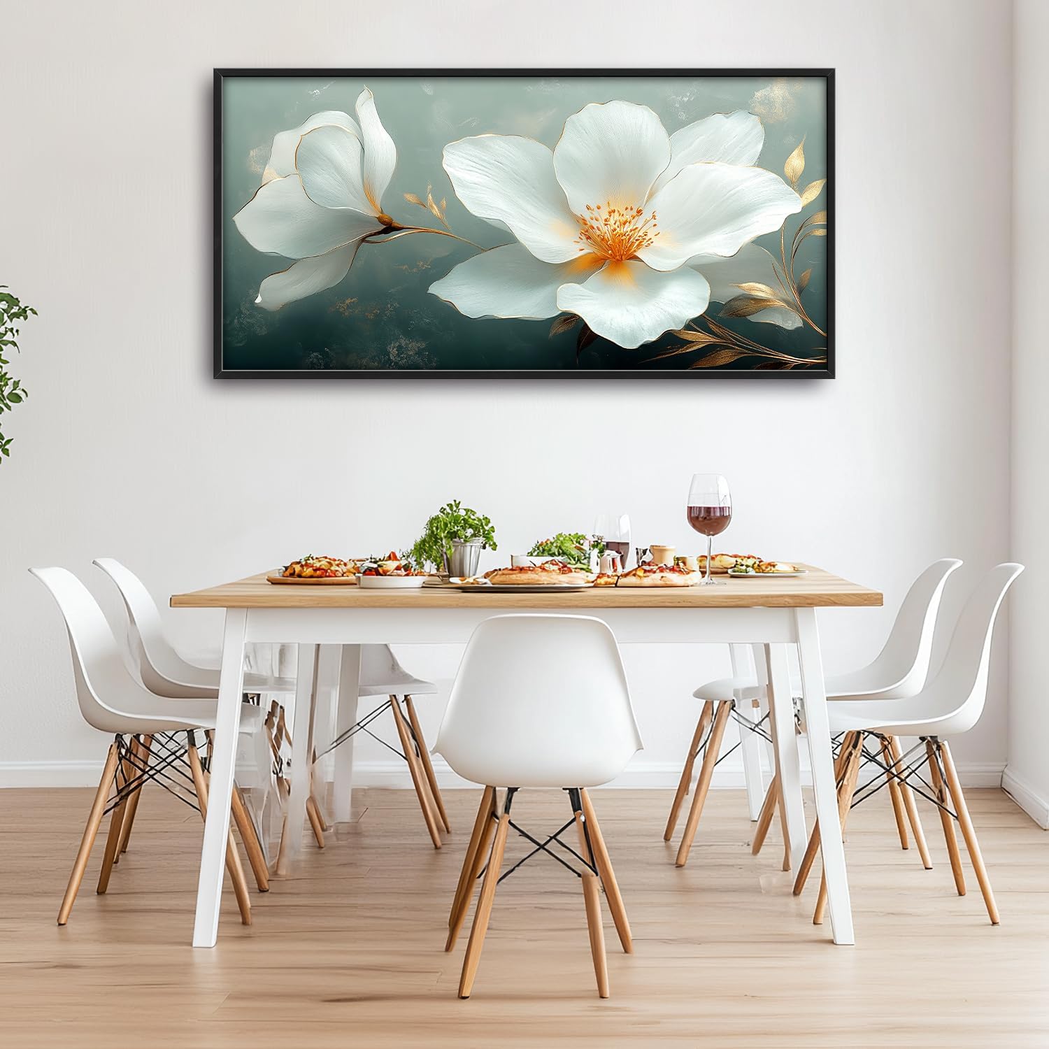 Large White Floral Wall Art for Living Room, Flower Canvas Oversized Wall Decor, Aesthetics Framed Pictures Painting Print Artwork for Bedroom Office 60L" x 30W"