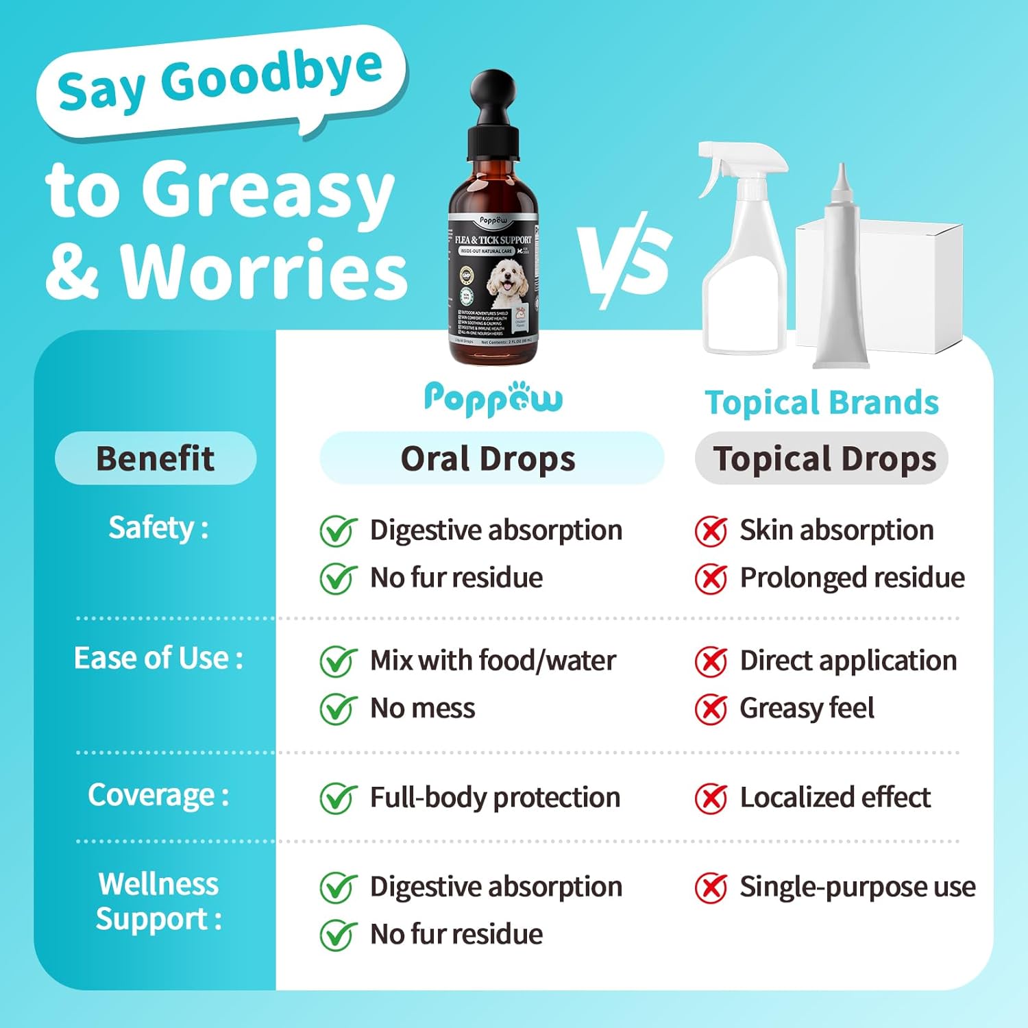 - Personalized Feeding for All Dogs: Our dog supplement is suitable for dogs of all breeds and sizes over 12 weeks. POPPAW's easy-to-use liquid drops offer weight-based dosing for tailored care, providing precise support for dogs of all sizes—from small to large breeds. For the best results, give your dog our oral drops daily.