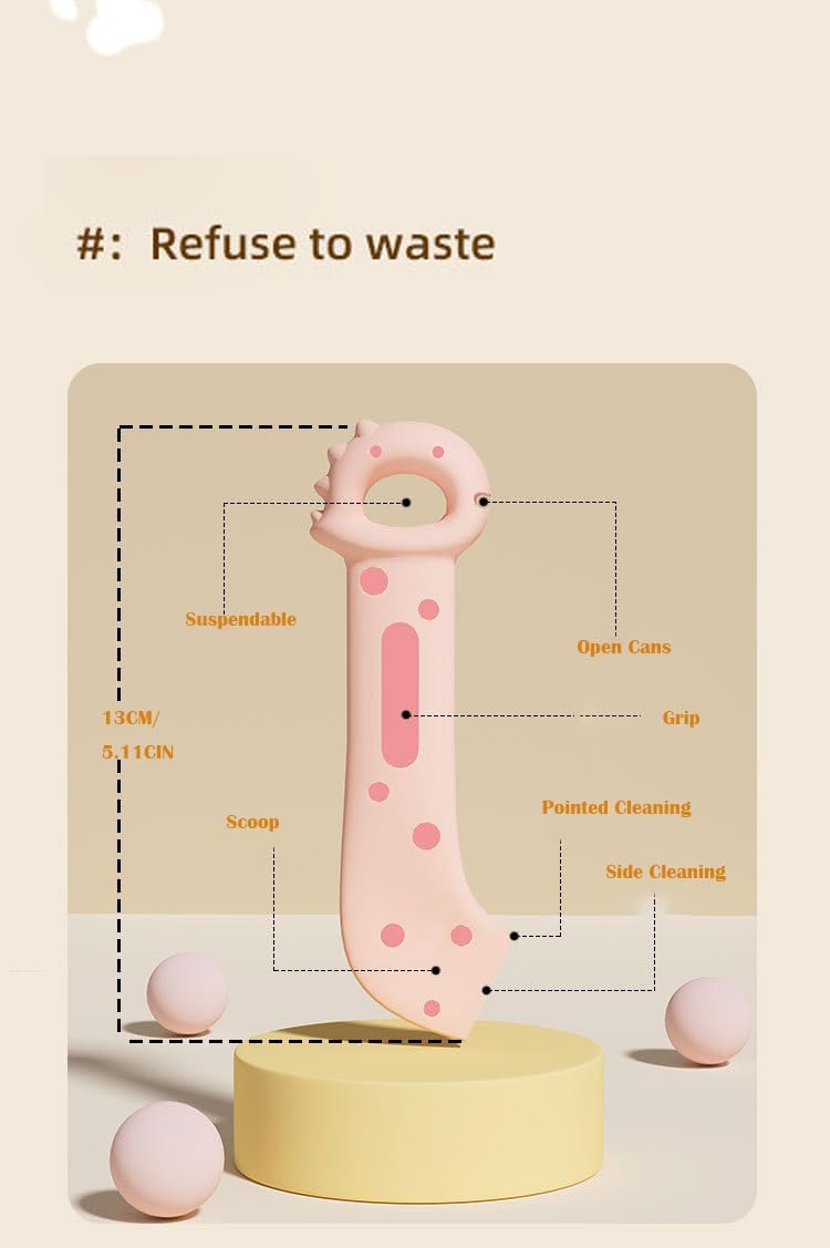 - Multi-functional Spoon: Dinosaur head design with a pointed tip for scraping corners. Ergonomic handle fits small hands. Perfect for wet food!