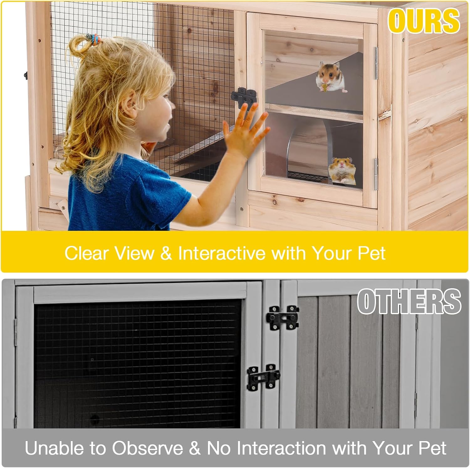 AIVITUVIN Wooden Guinea Pig Cage Indoor with Cooling Plate and Anti-Chewing Edges Two-Story Rabbit Hutch Pull Out Tray Outdoor Rabbit Cage with Raised Stand and Wire Mesh Small Animals Cage (Nature