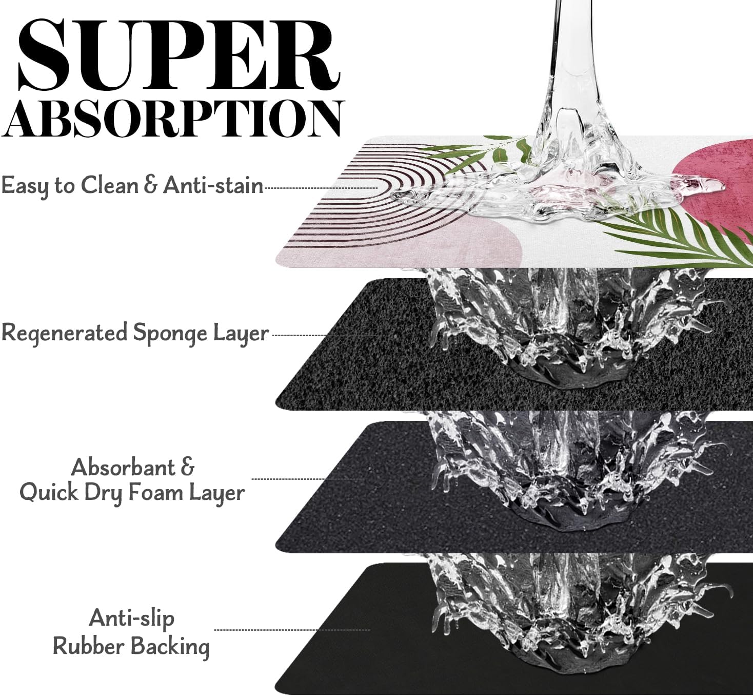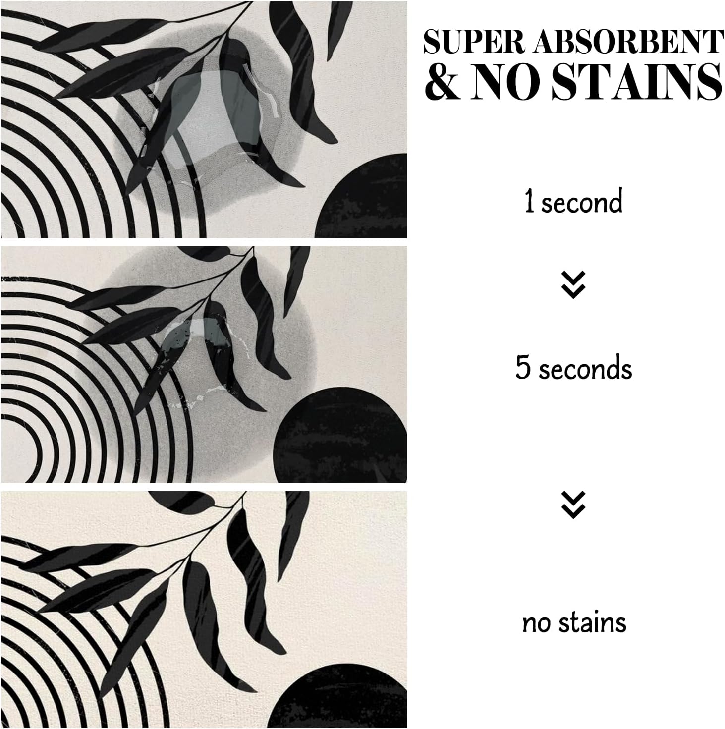 • Super Absorption: The dog mat for water bowl can absorb spilled water without leaving traces and dry quick, avoid wetting pet paws even for messy drinkers. And it does not attract pet hair like traditional silicone dog bowl mat.