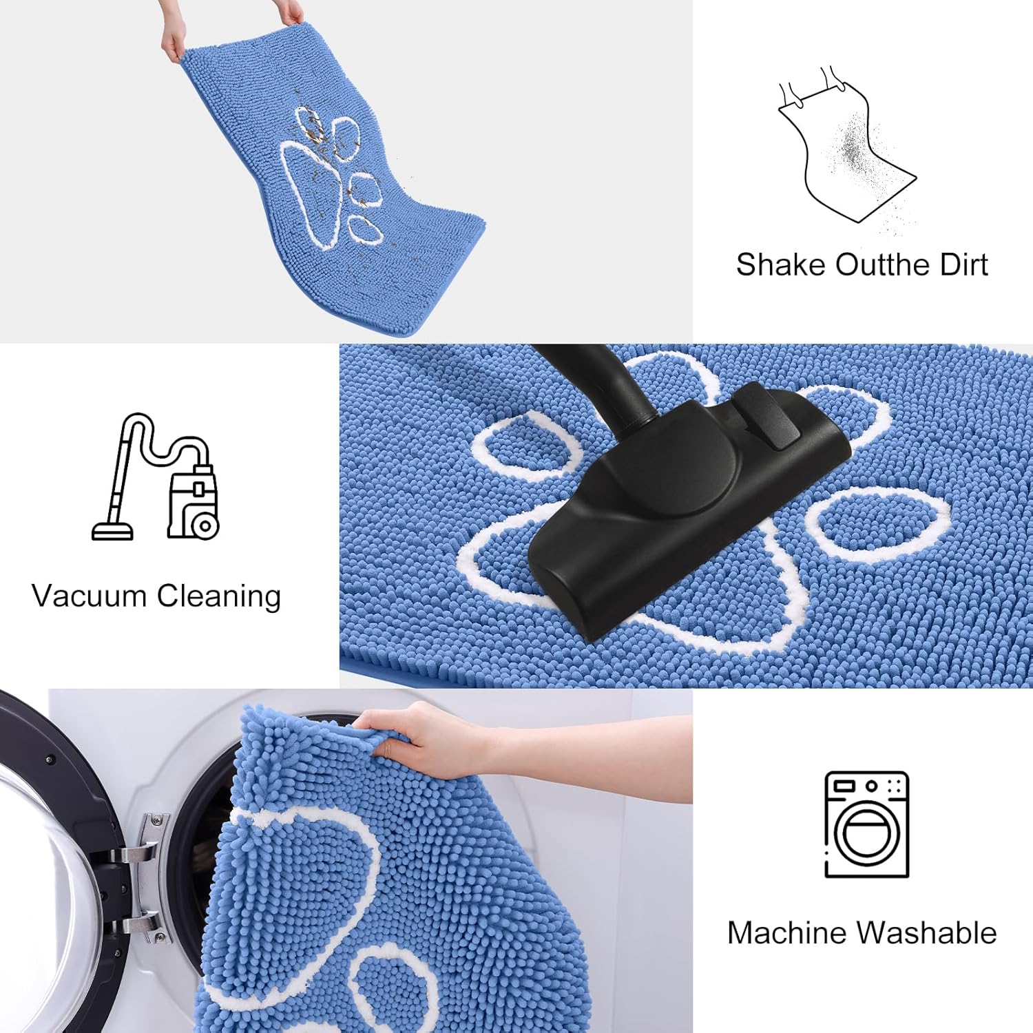 Smiry Dog Door Mat for Muddy Paws, Absorbent Dirt Trapper Non Slip Quick Dry Washable Chenille Mat for Mud Dogs, Entry Rug for Indoor and Outdoor (36x24 Inches, Cornflower Blue)