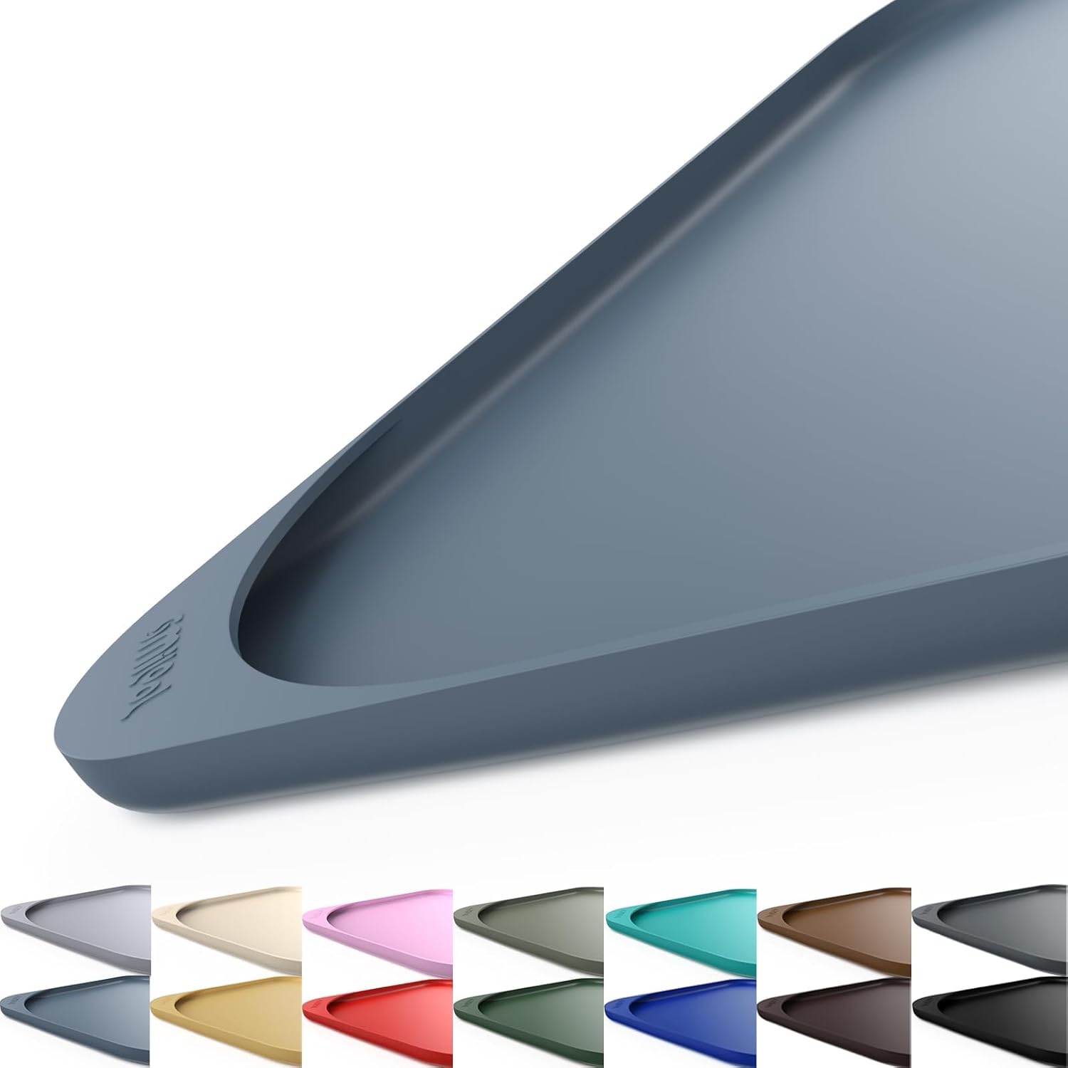 Silicone Pet Feeding Mat with Raised Edge & Residue Collection Pocket for Food and Water, Dog Bowl Mats, Cat Bowls Placemat with High Lip for Floor Waterproof, 19 x 12 x 0.7 Slate Blue
