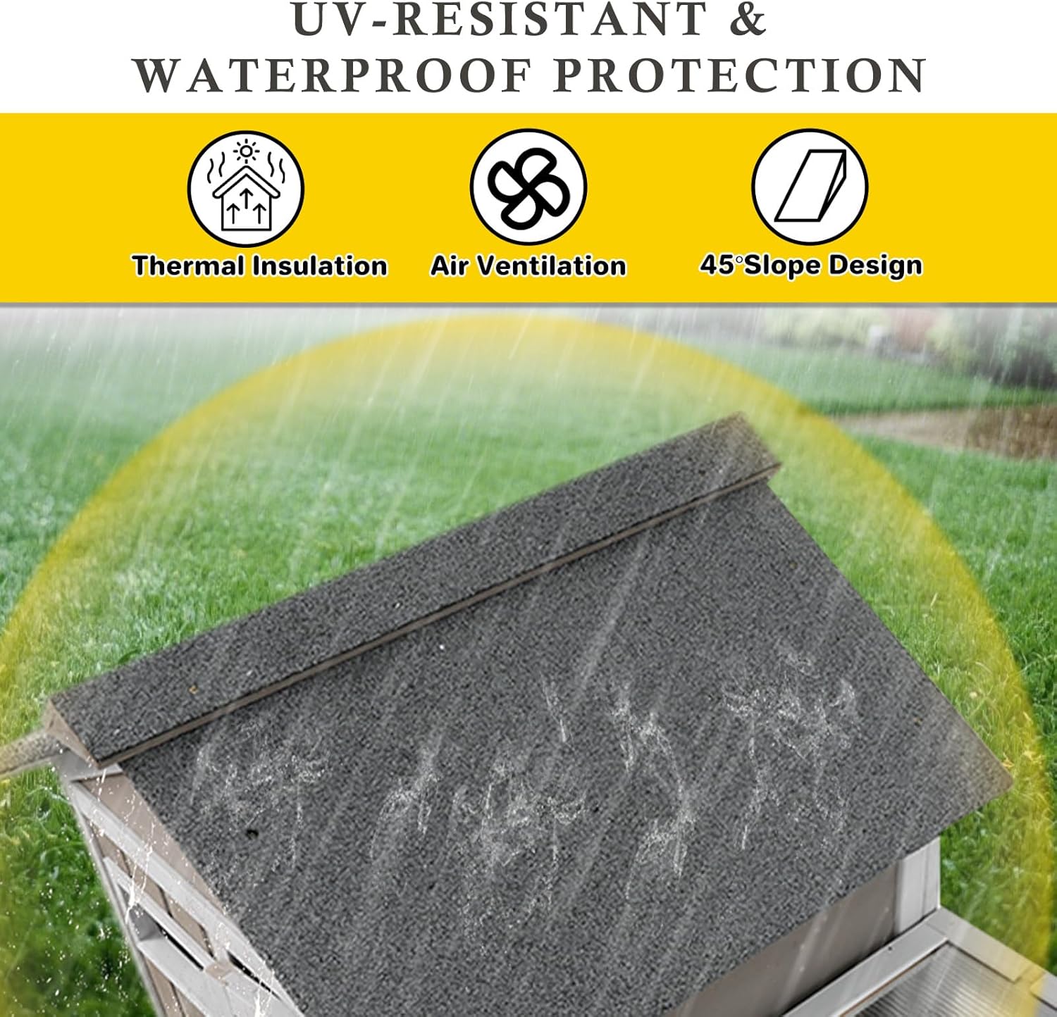 94''L Rabbit Hutch Outdoor Chicken Coop with Run, Wooden Indoor 2 Story Bunny House with Waterproof Roof, Pull Out Tray, Guinea Pig Rabbit Duck Cage for Small to Medium Animals and Pet Lover, Gray