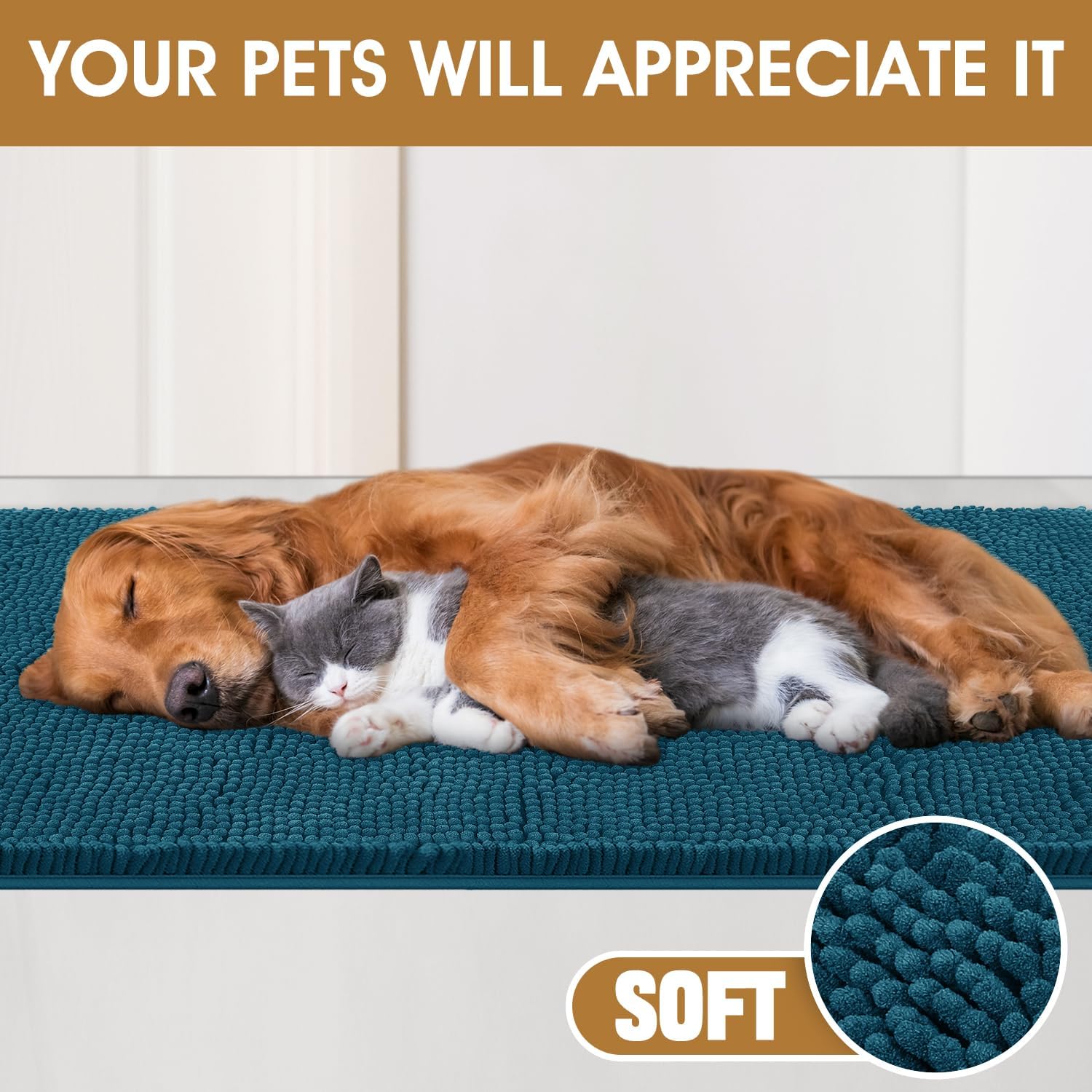 Extra Large Dog Door Mats for Muddy Paws, Chenille Absorbent Door Mats, Non Slip Heavy Indoor Door Mat for Dogs, Soft Dog Mat for Entryway, Mud Paws, Inside Floor,60" x 36", Teal Blue