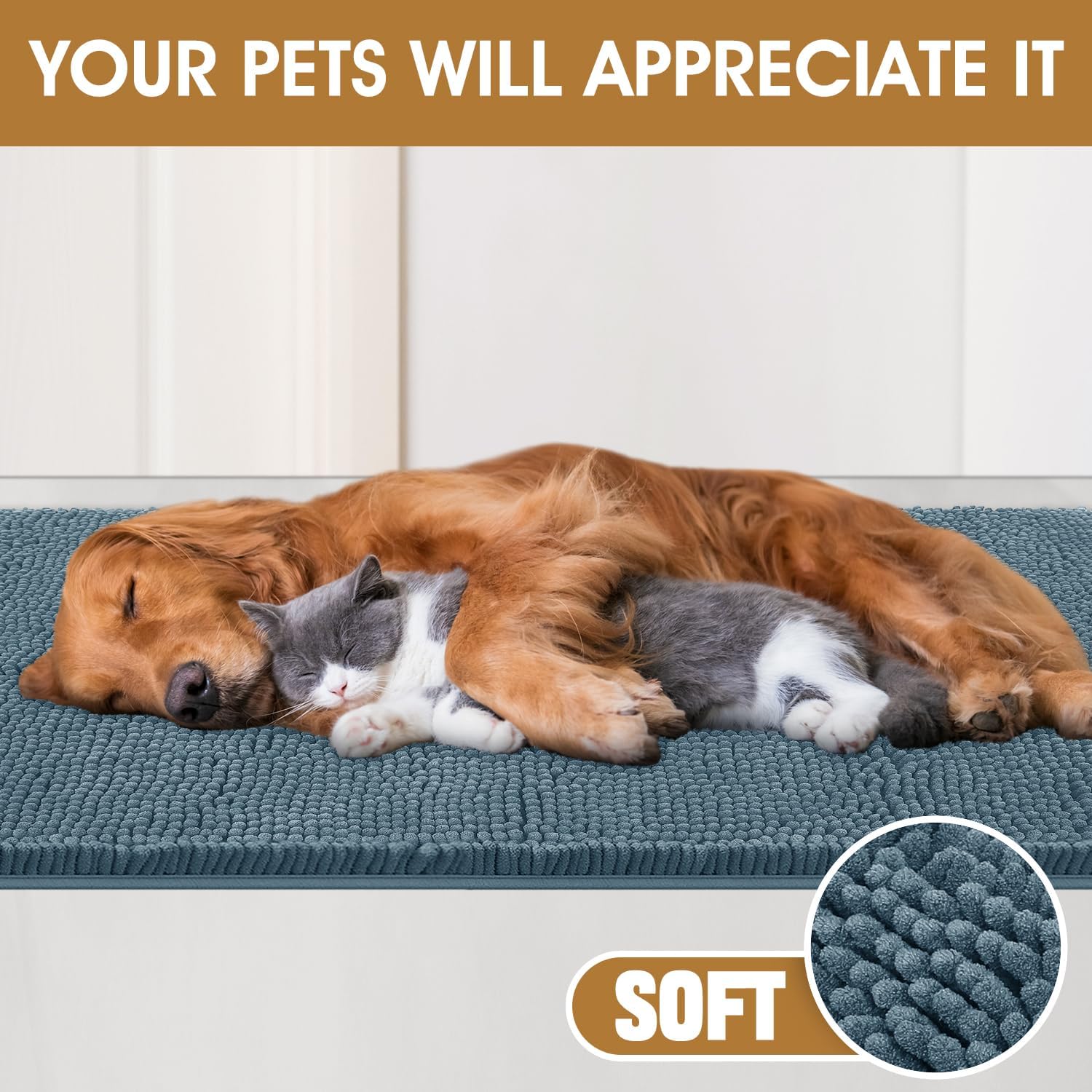 Extra Large Dog Door Mats for Muddy Paws, Chenille Absorbent Dog Mats, Non Slip Heavy Mud Mat for Dogs, Soft Pet Mat for Entryway, Mud Paws, Inside Floor,71" x 25", Dusty Blue