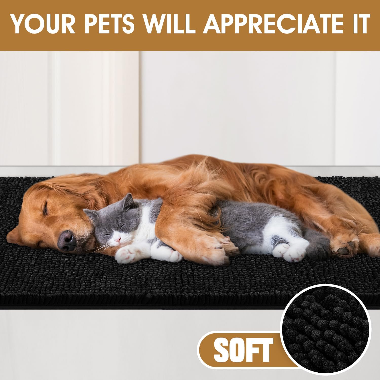 Dog Door Mats for Muddy Paws, Chenille Absorbent Dog Mats, Non Slip Heavy Mud Mat for Dogs, Soft Pet Mat for Entryway, Mud Paws, Inside Floor,48" x 38", Black